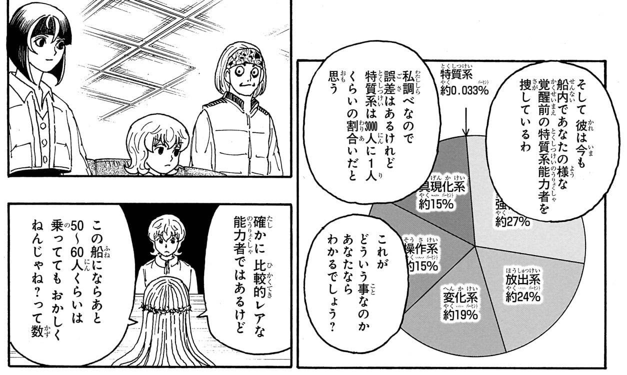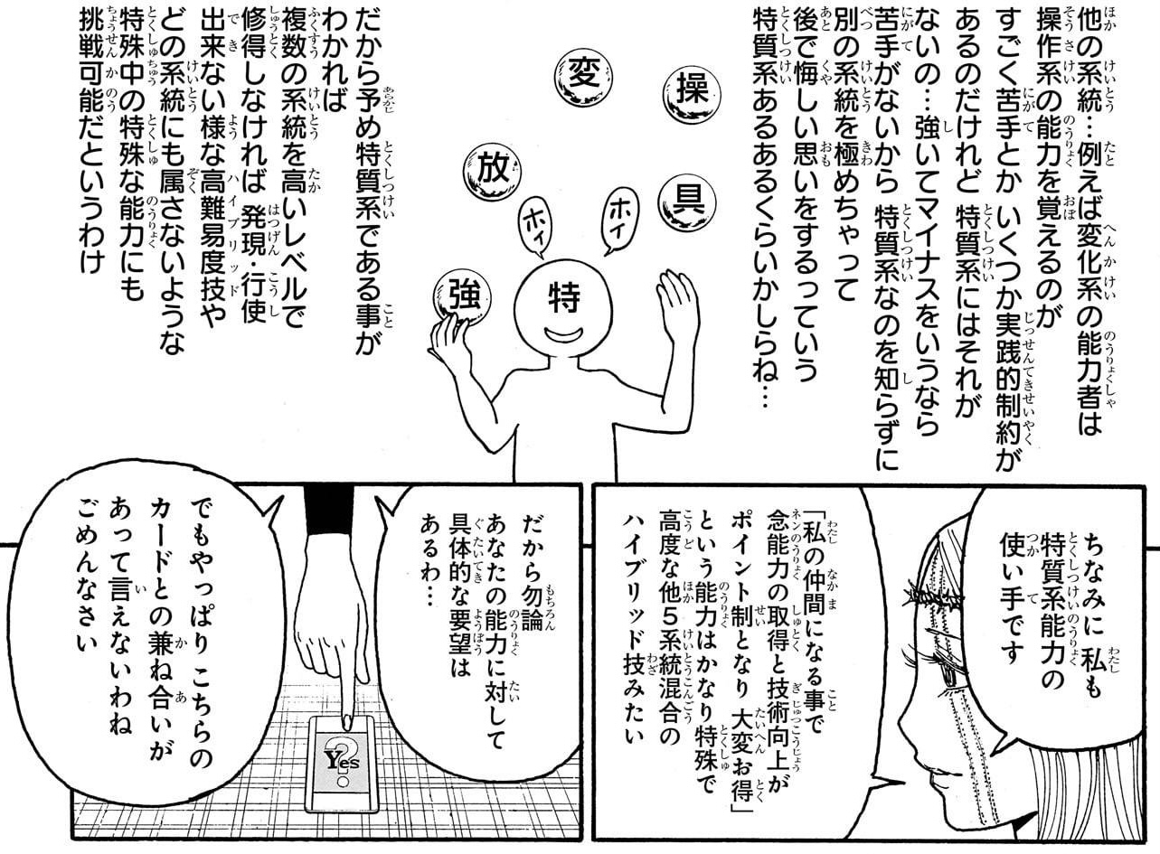 クロロとかベンジャミン(は特質と決まって無かった筈だが)の能力は特質だけが得意だと十分に使えこなせないだろうし>>47