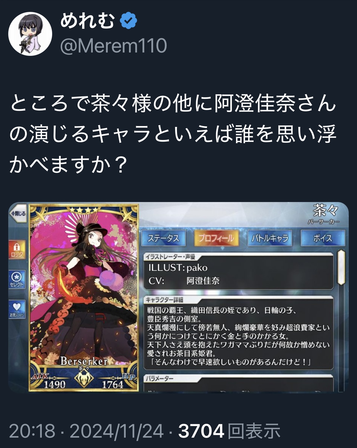 たぶん推しの事しか考えてないよこの顔知名度上がったとはいえ水着BBがなかなかいないから周回メンツとして起用しにくいな〜と感じる