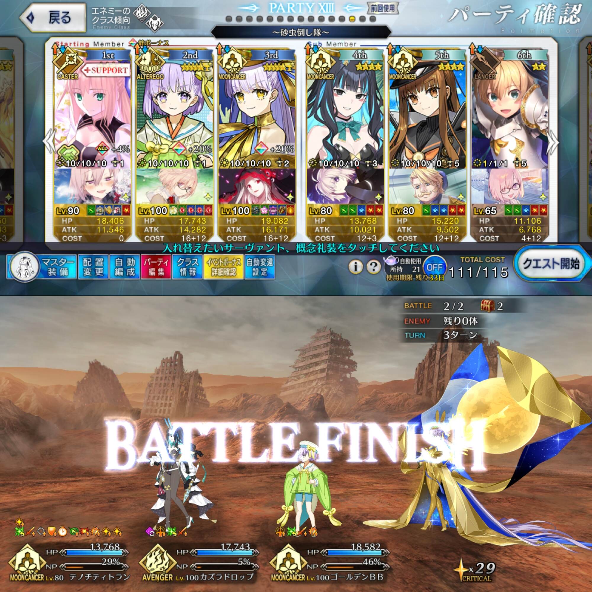 なお後々になってウーサーは人としてダメだが面白がって乗っかった自分も大概と猛省する模様月光採掘所の最適解すぎるのだ……というか彼女以外で2ターン周回できるんか?