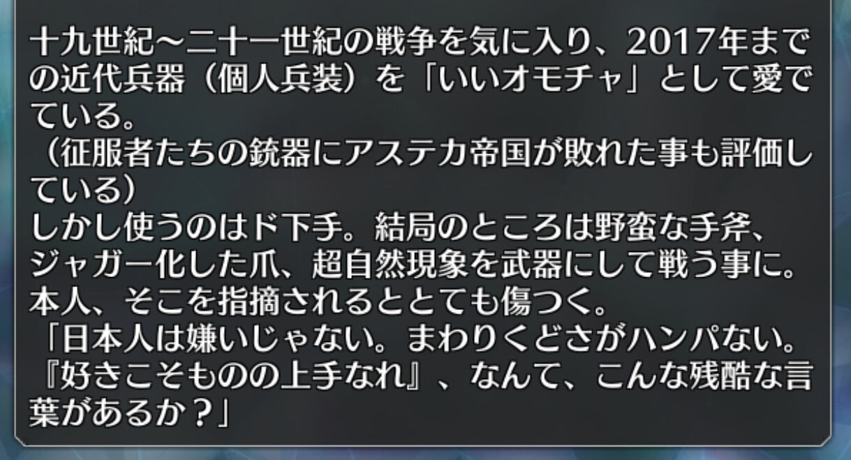 デミヤやアラフィフが作り出した銃は神秘が宿って威力が上がるけど元からある銃を使うのはランスロットみたいなスキルが必要だったはず>>971