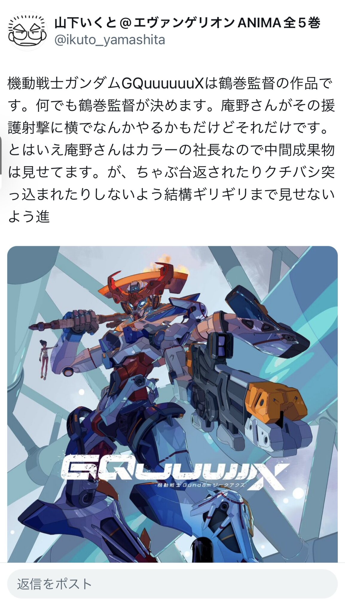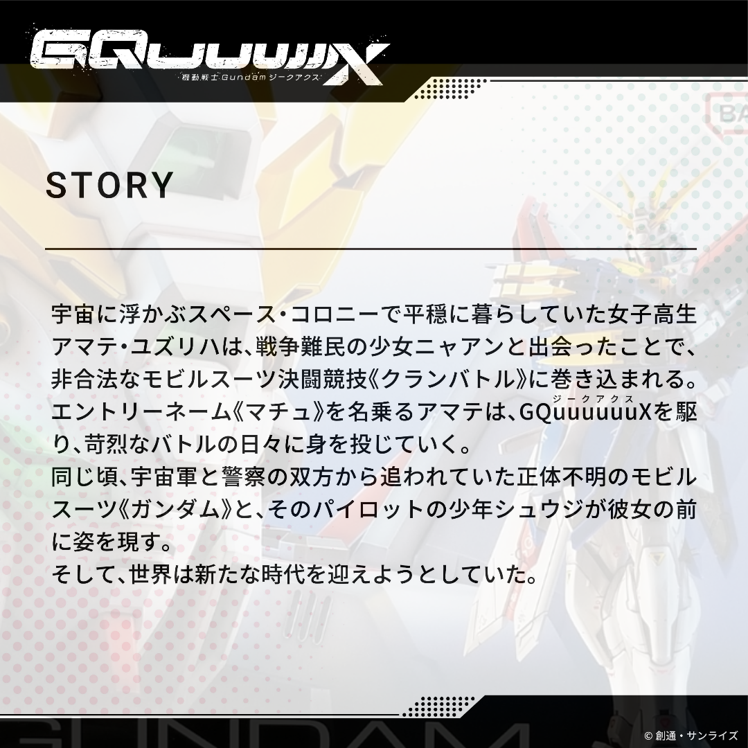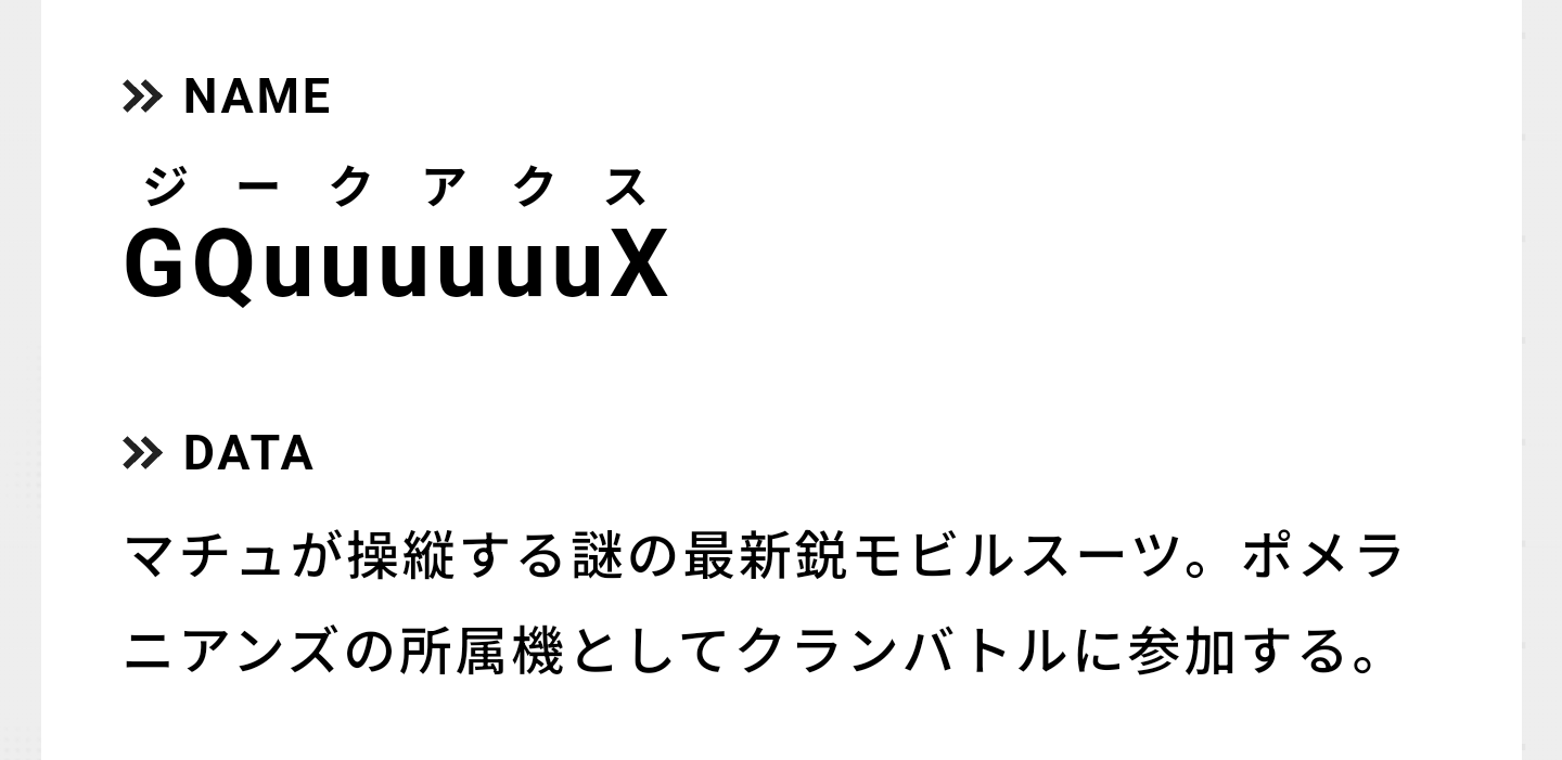 俺も調べて今知ったわなんて読むのか戸惑ったがGQuuuuuuX(ジークアクス)か