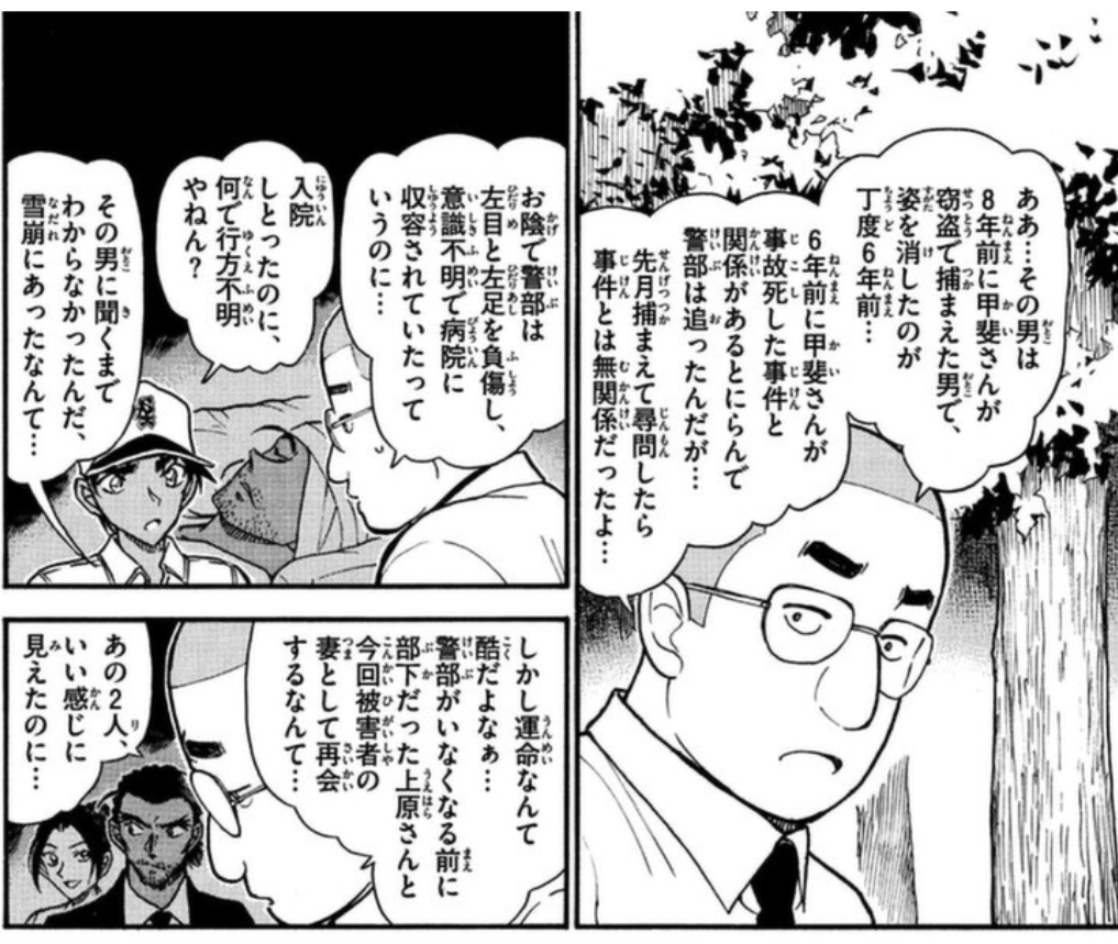 その窃盗犯が殺されて――みたいな出だしだと予想。ヒロのスマホから何かの回想が始まりそうフラッシュバックって意味でもそうだし。高明今回登場するしな。大和警部が過去に雪崩にあっての過去話しつつ今回の事件の話がくるとか。