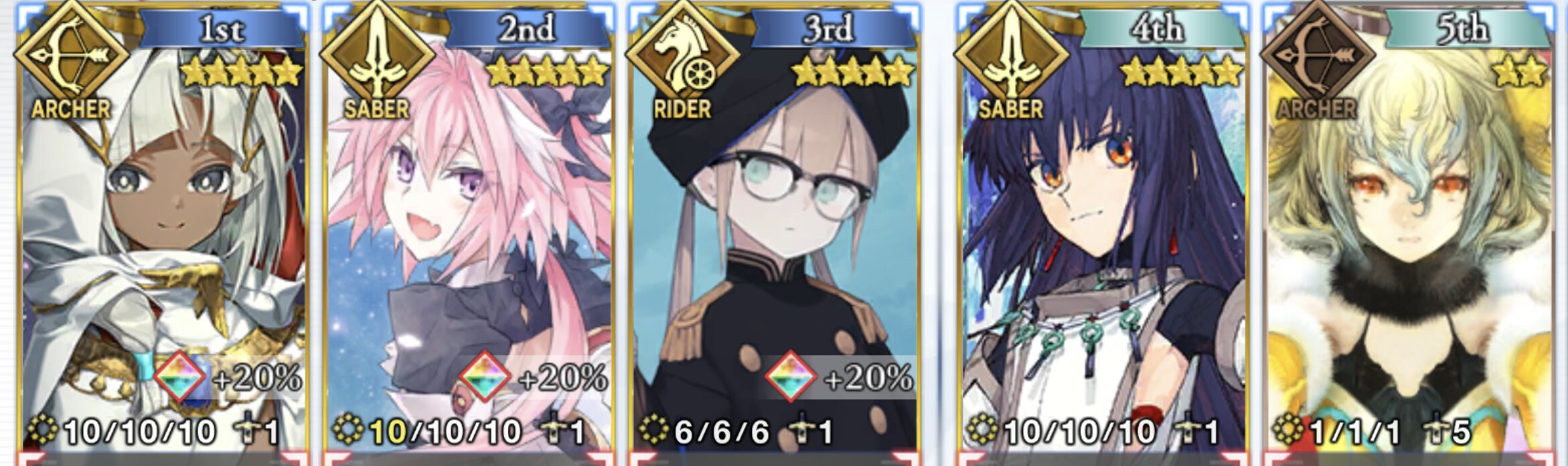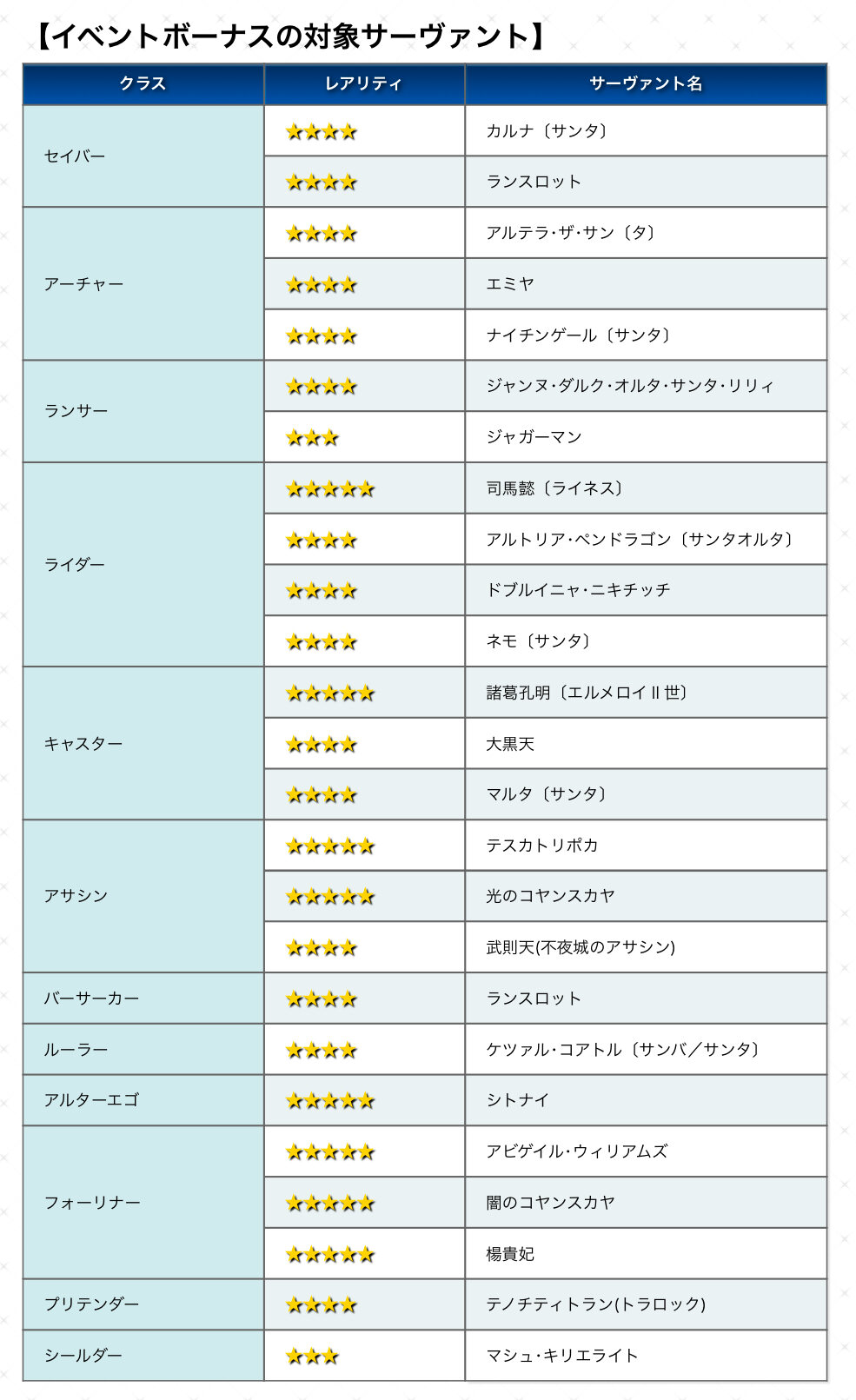 エミヤはいつもの料理担当だけど特攻あるのは怪しいな。