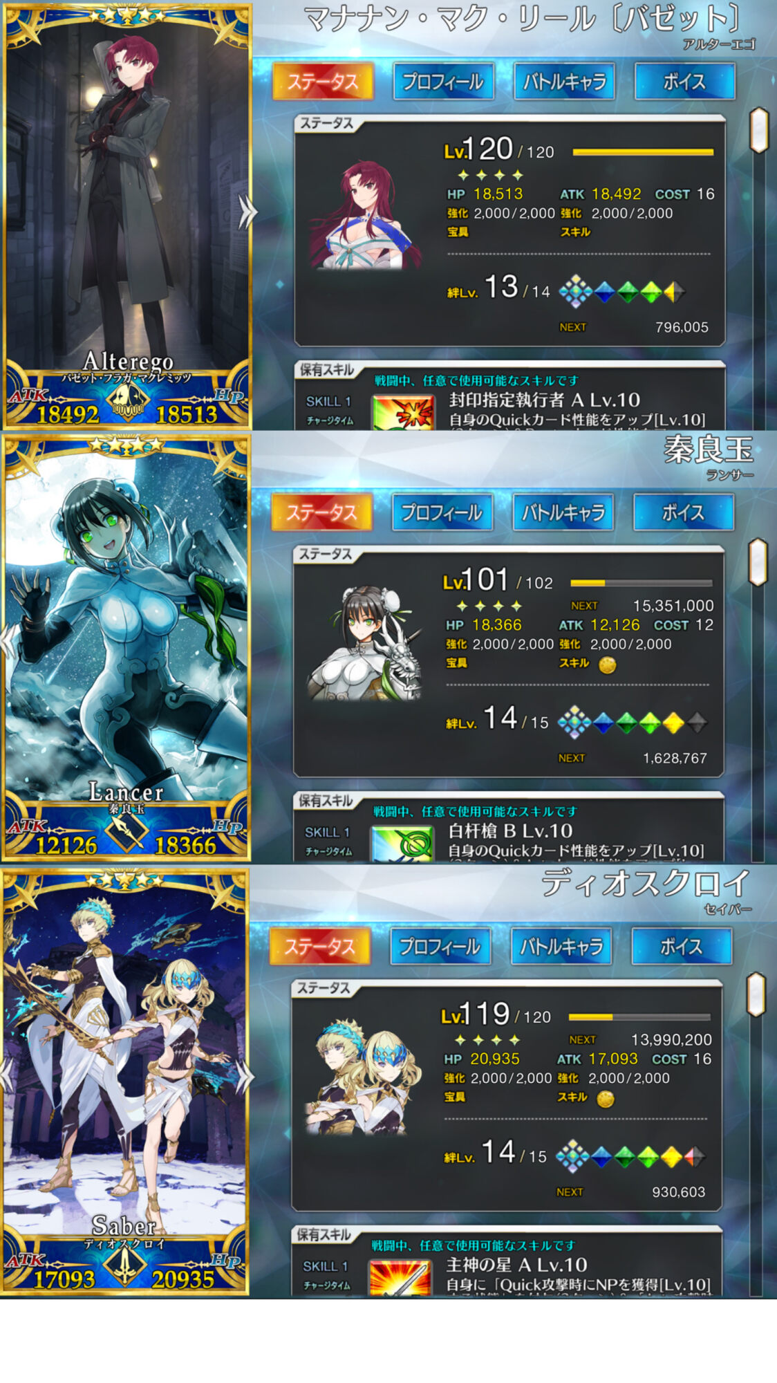 欠点としては前述した通り宝具の各色バフが味方依存なところ。そして同じ星4キャスター内に術ギルやエレナなど強力なライバルがいる事ね