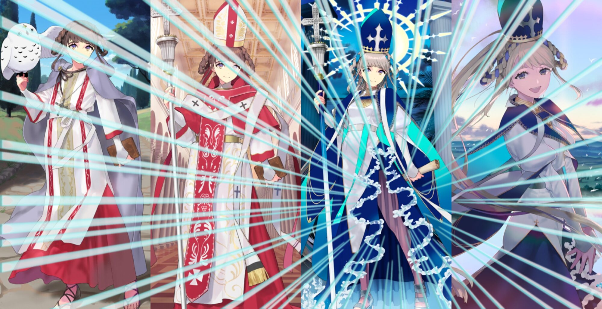 宝具は支援型全体A。まず味方全体を体力回復させて宝具発動時にQバフが乗ってる者に攻撃力アップ、Aバフに乗ってる者にクリ威力アップ、Bバフに持ってる者に宝具威力アップをそれぞれ3Tずつ付与