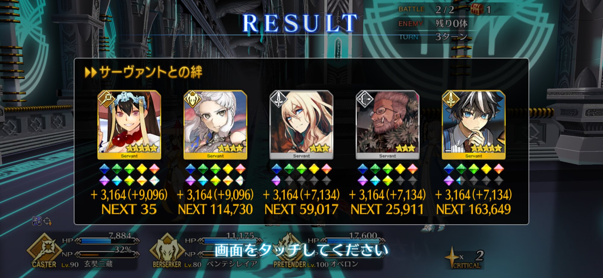 スキル1『贋造生命(亜種)』自身にガッツとHP回復状態を5Tずつ、弱体無効1回を3T付与。耐久向けスキルね育成は最後でいいわ