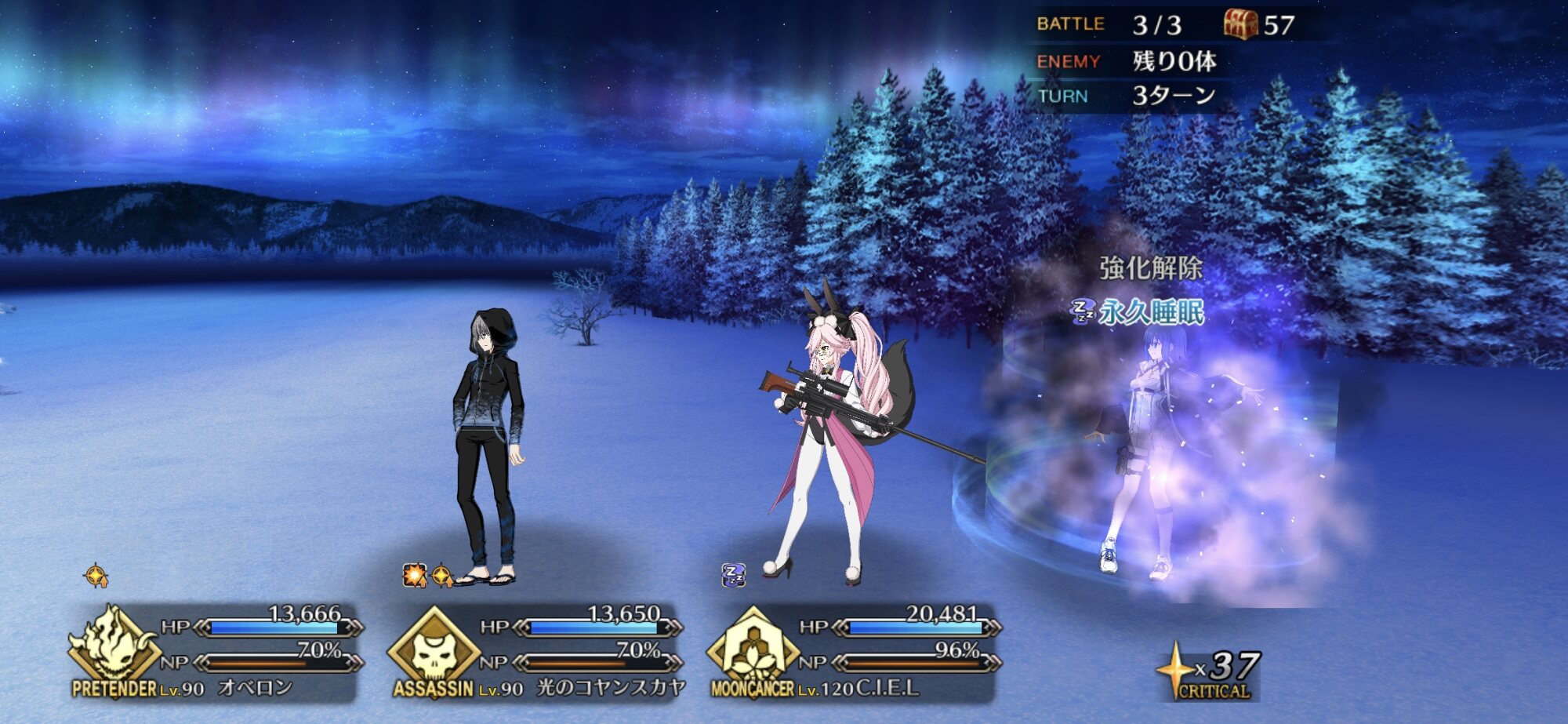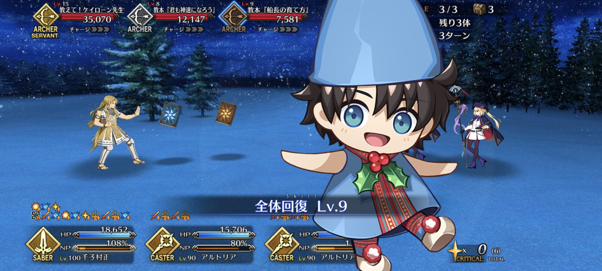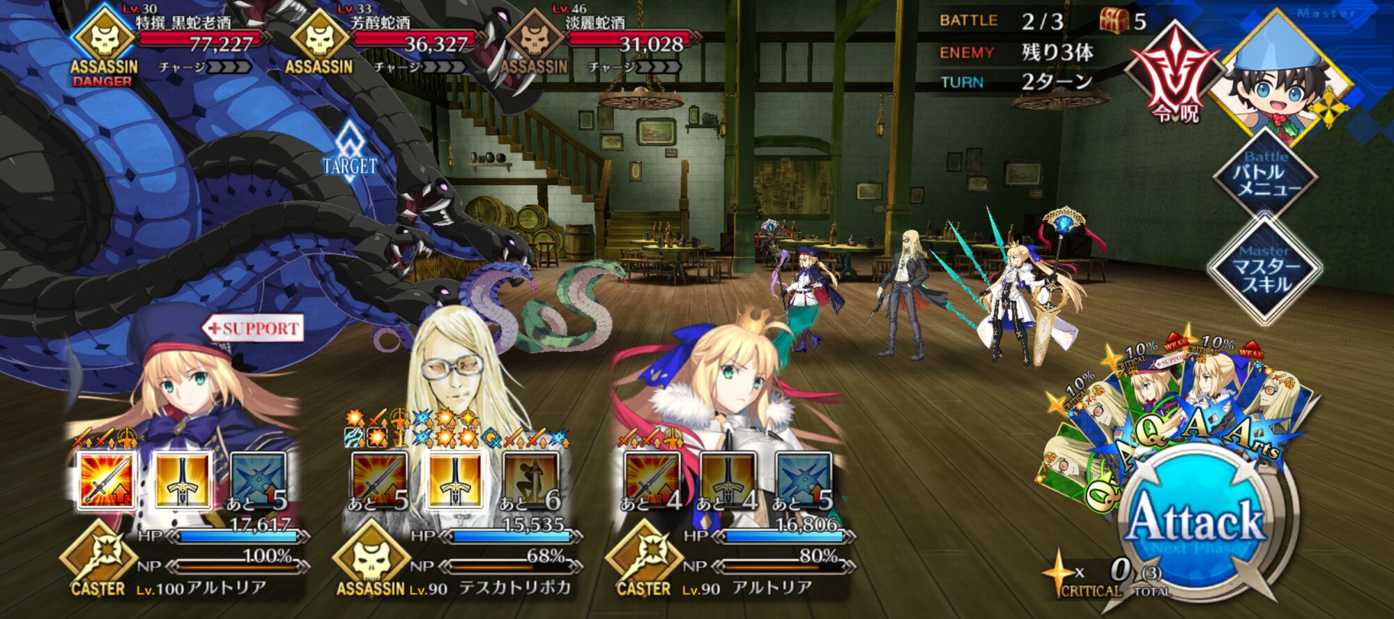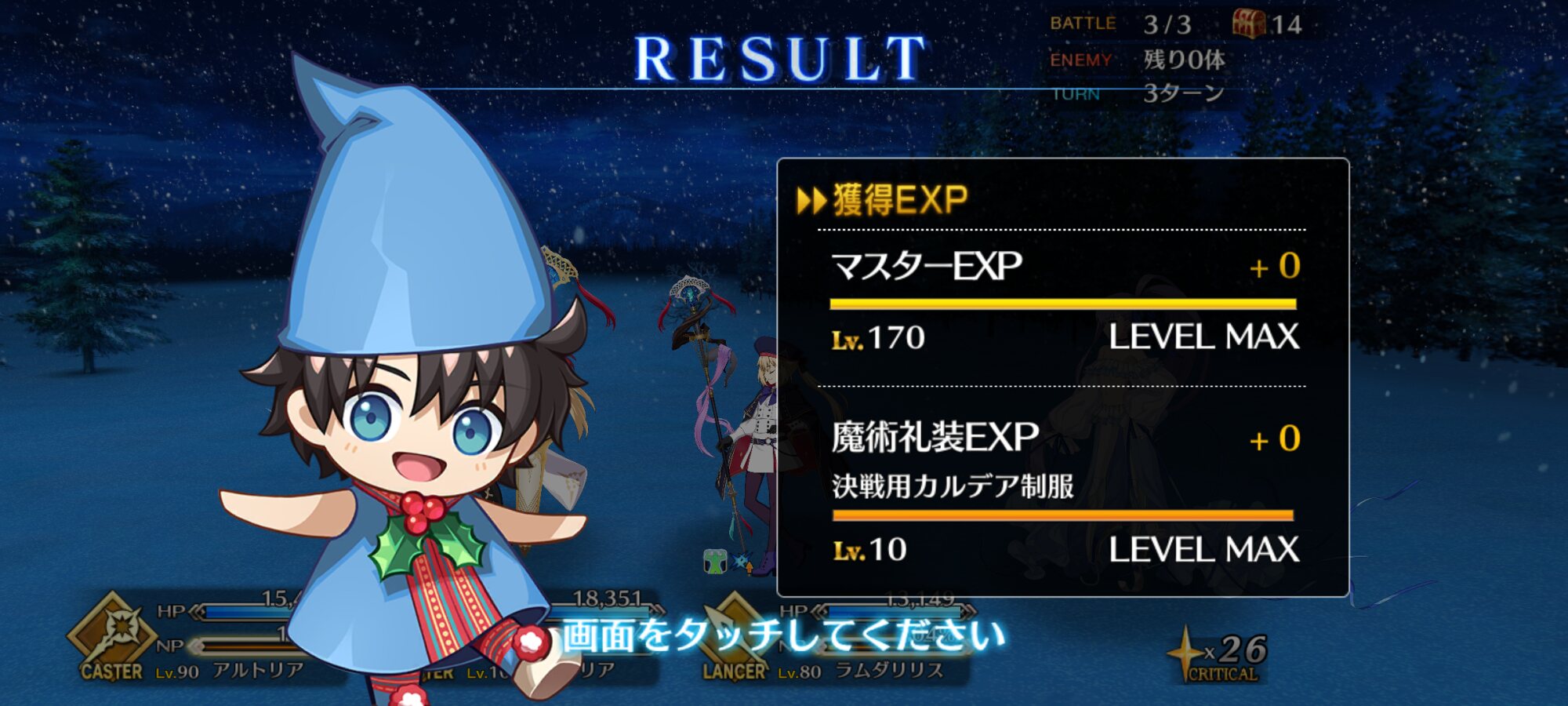 ちなみに、キャストリア&ベディヴィエール&ハベにゃん編成はキャストリア(アペ2LvMaxのフレ)の宝具を撃つことで追撃なしで行けました。