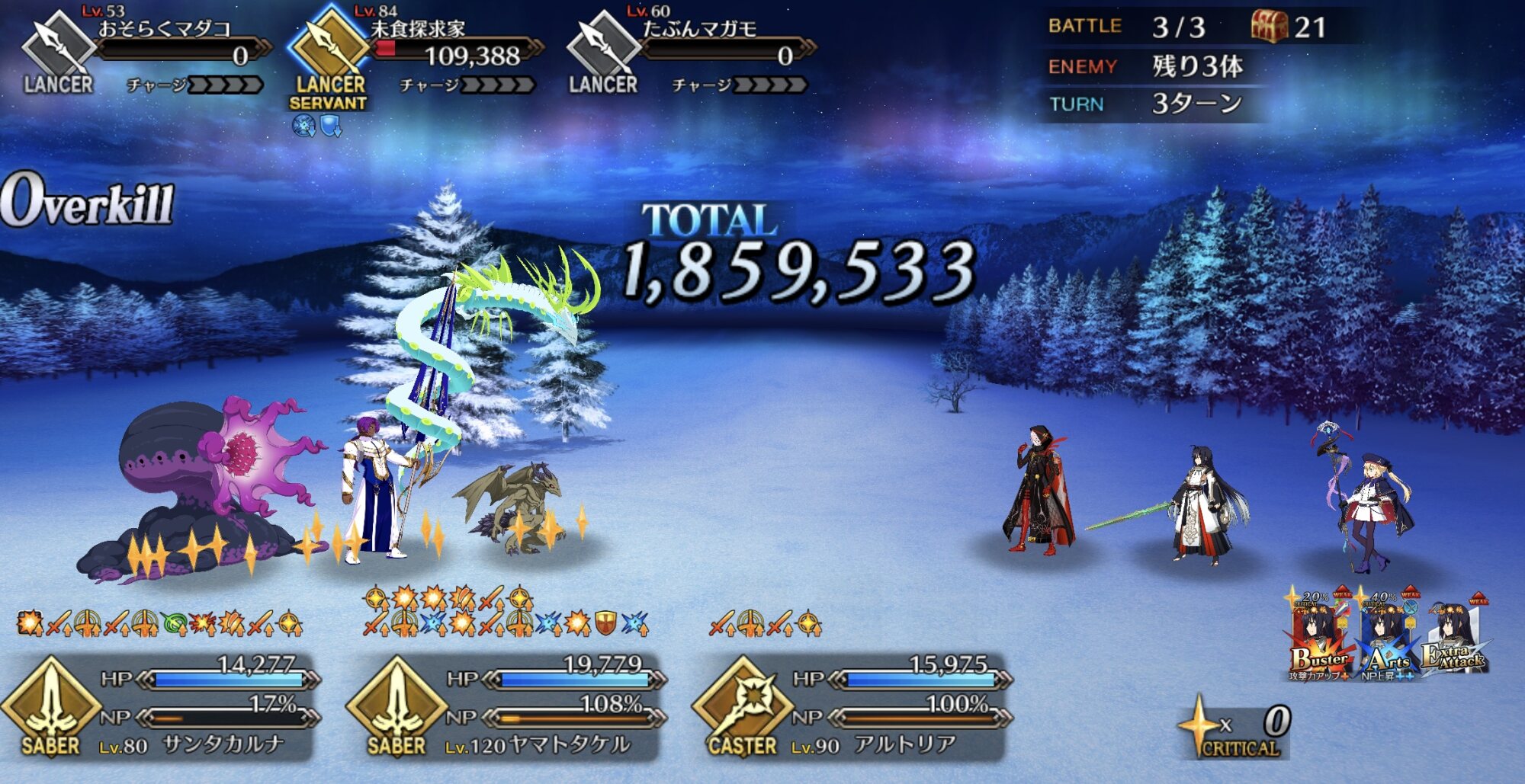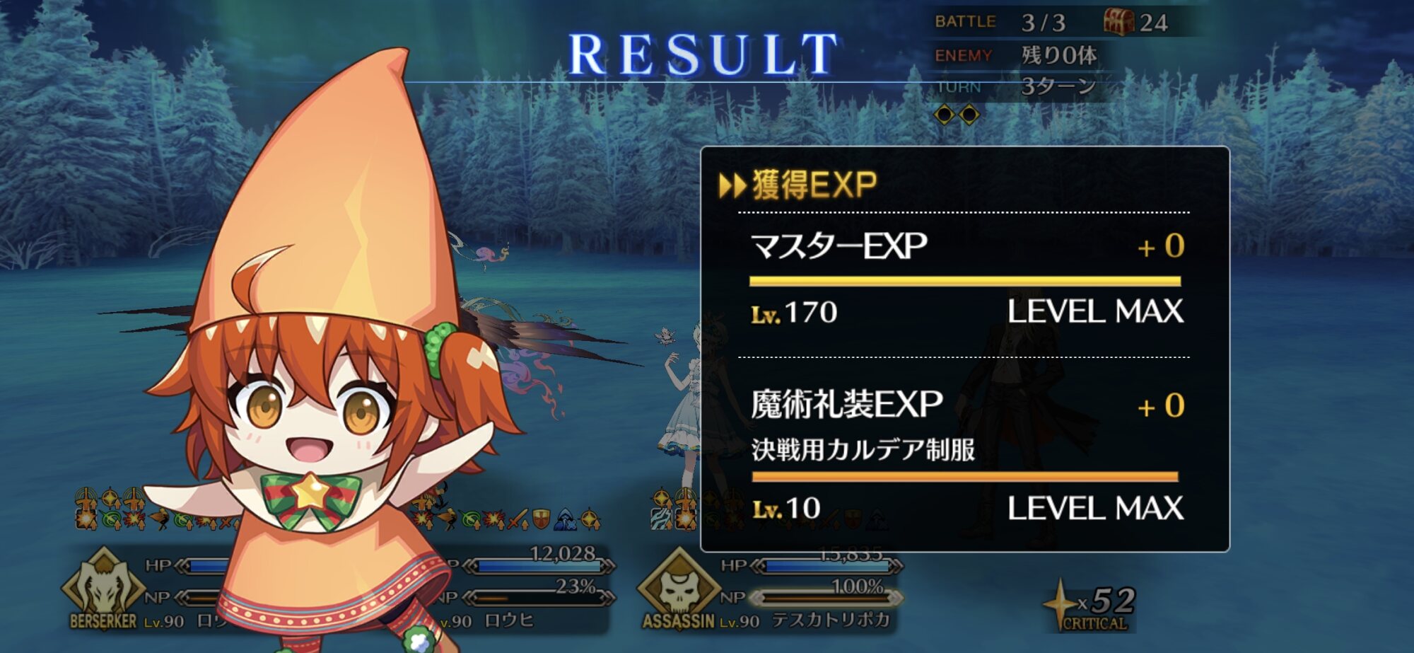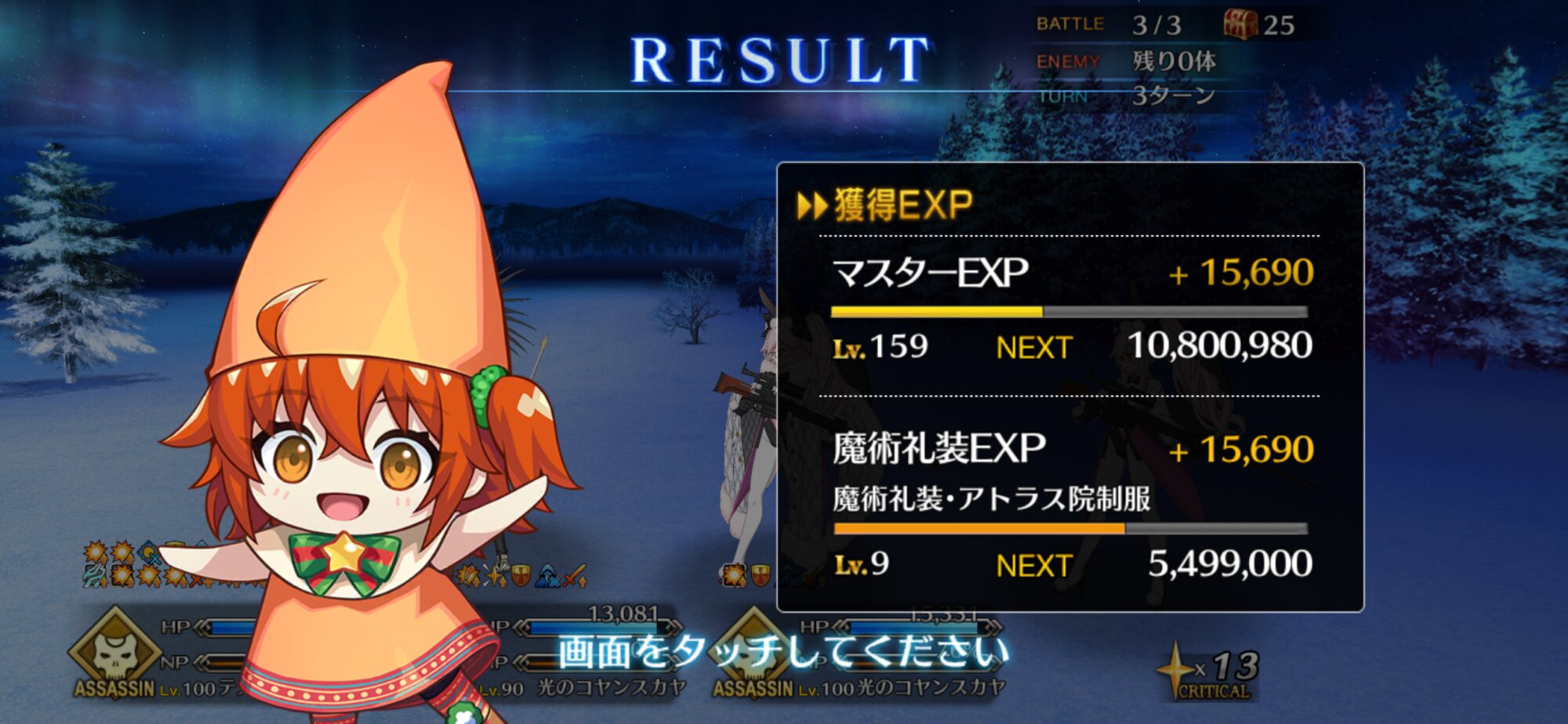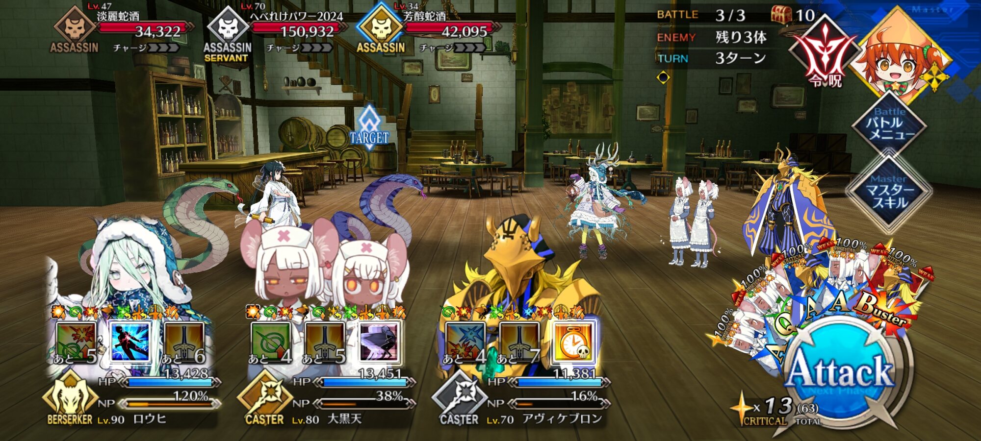 ちなみに、キャストリア&ベディヴィエール&ハベにゃん編成はキャストリア(アペ2LvMaxのフレ)の宝具を撃つことで追撃なしで行けました。