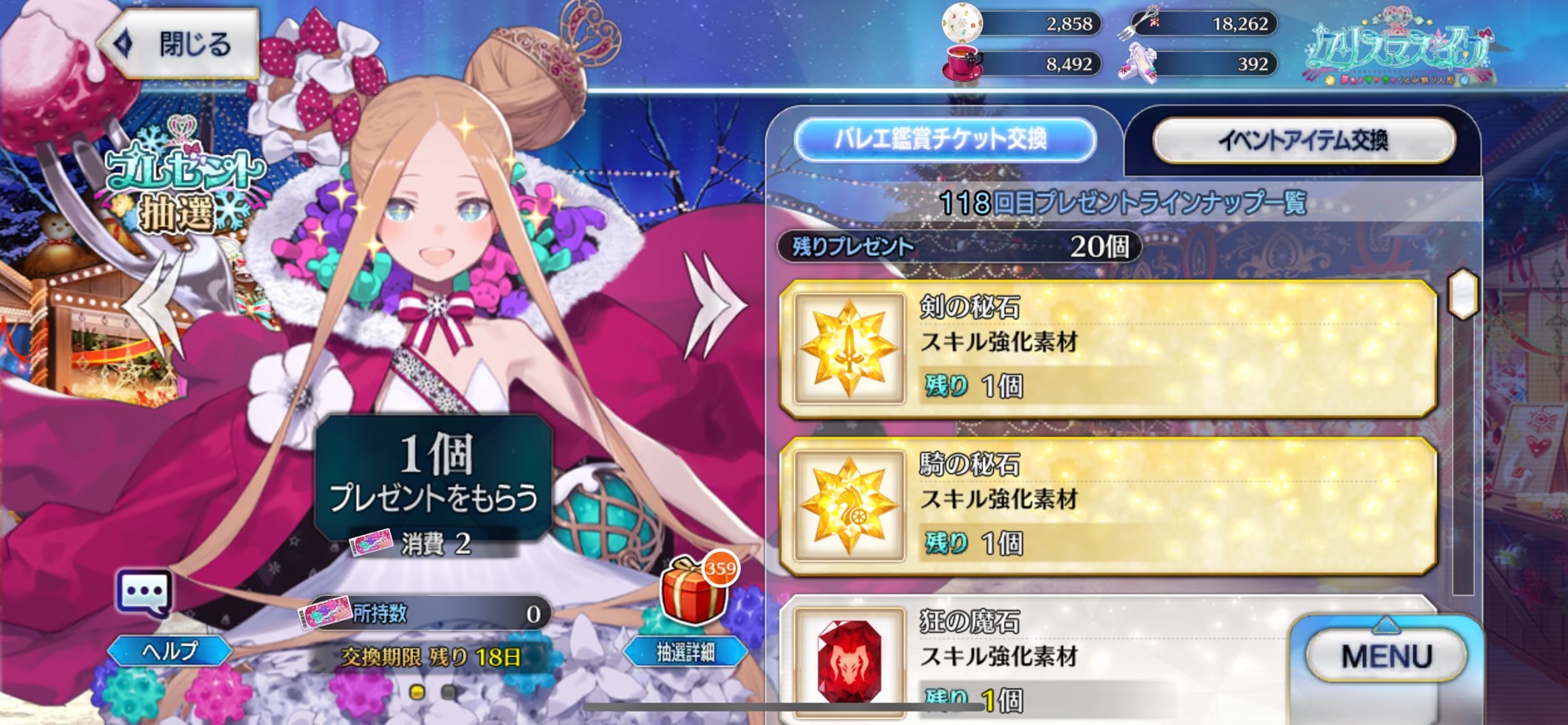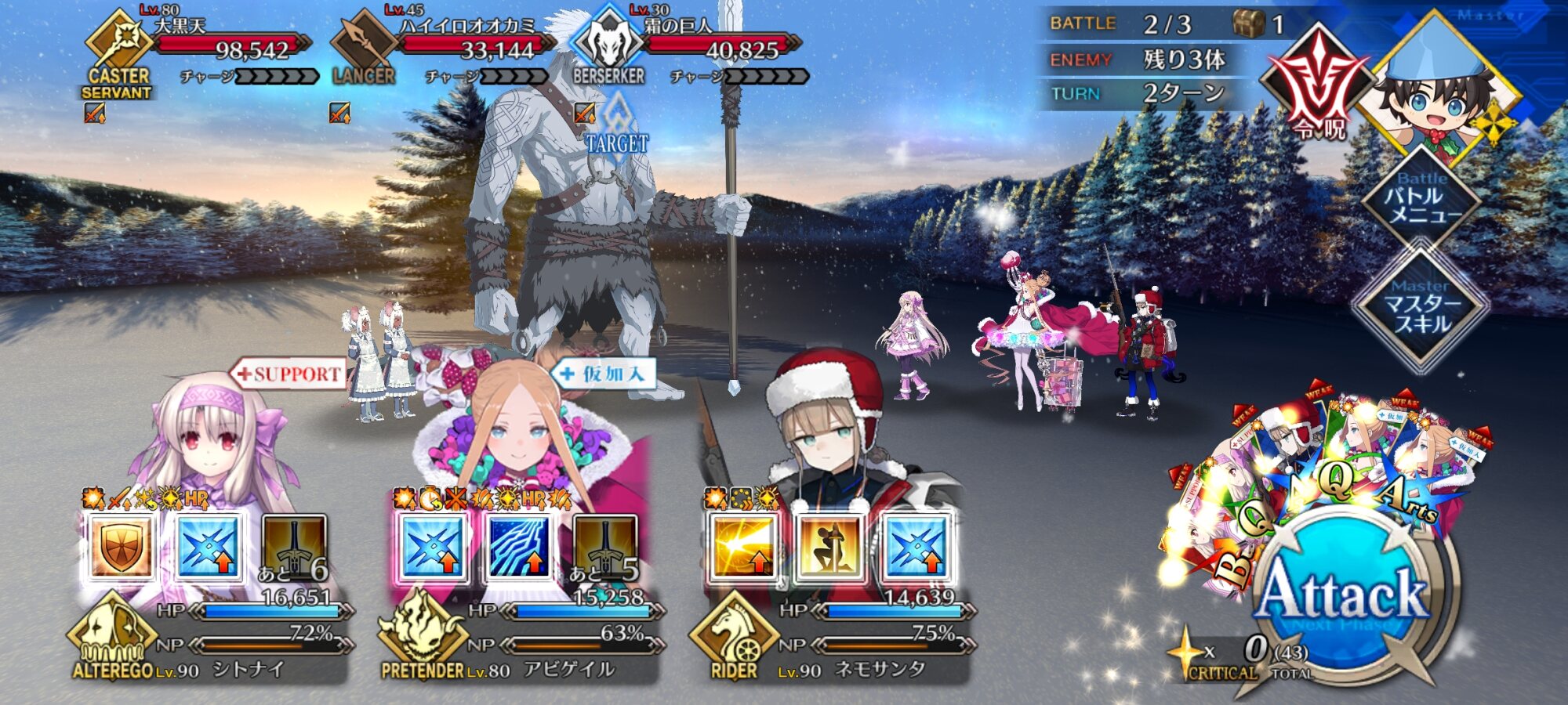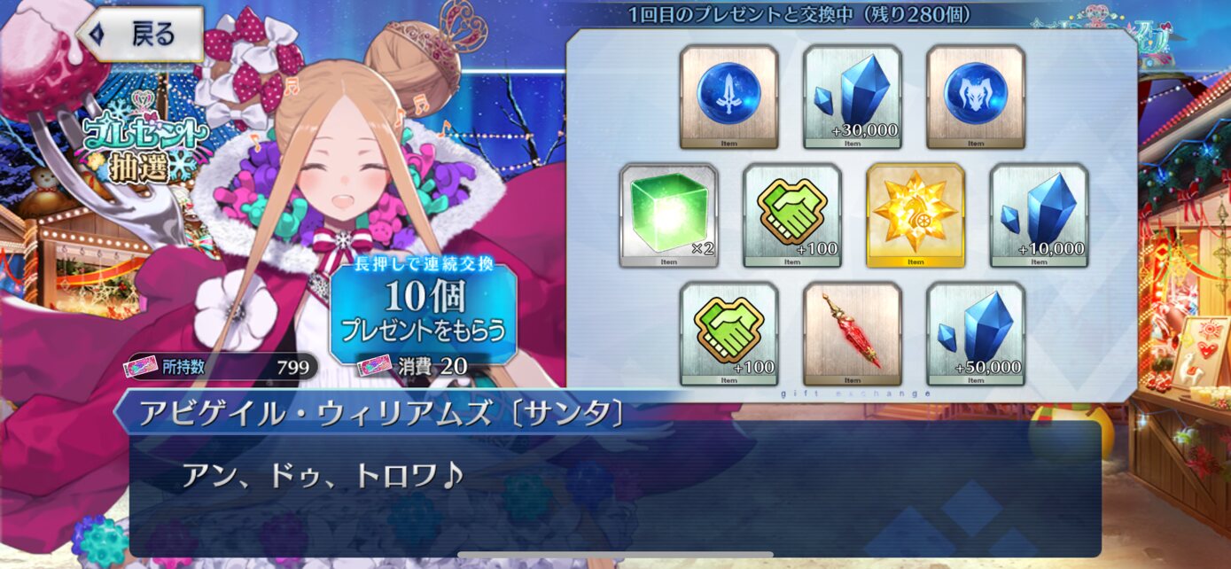 サンタアビー周回と並行で育ててるけど宝具といいスキル2といいマスターの力になりたい力(ヂカラ)を感じる