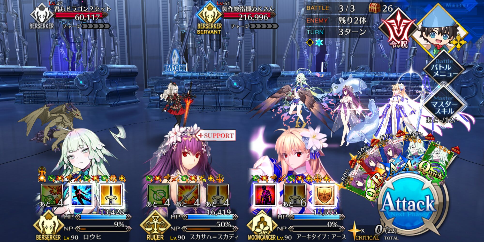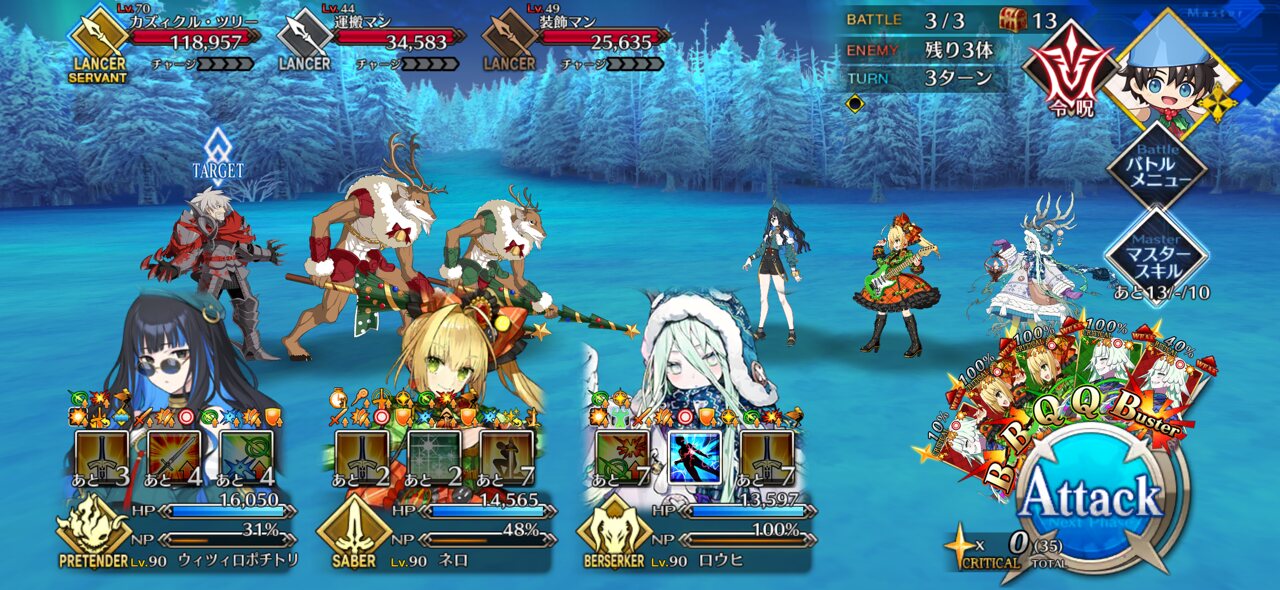 初手のドラゴンは超巨大特攻刺さるし全員箱チケ礼装ならNPも足りるし90+はロウヒ太公望ワンジナで回してる、ポチミス無いからすごく楽
