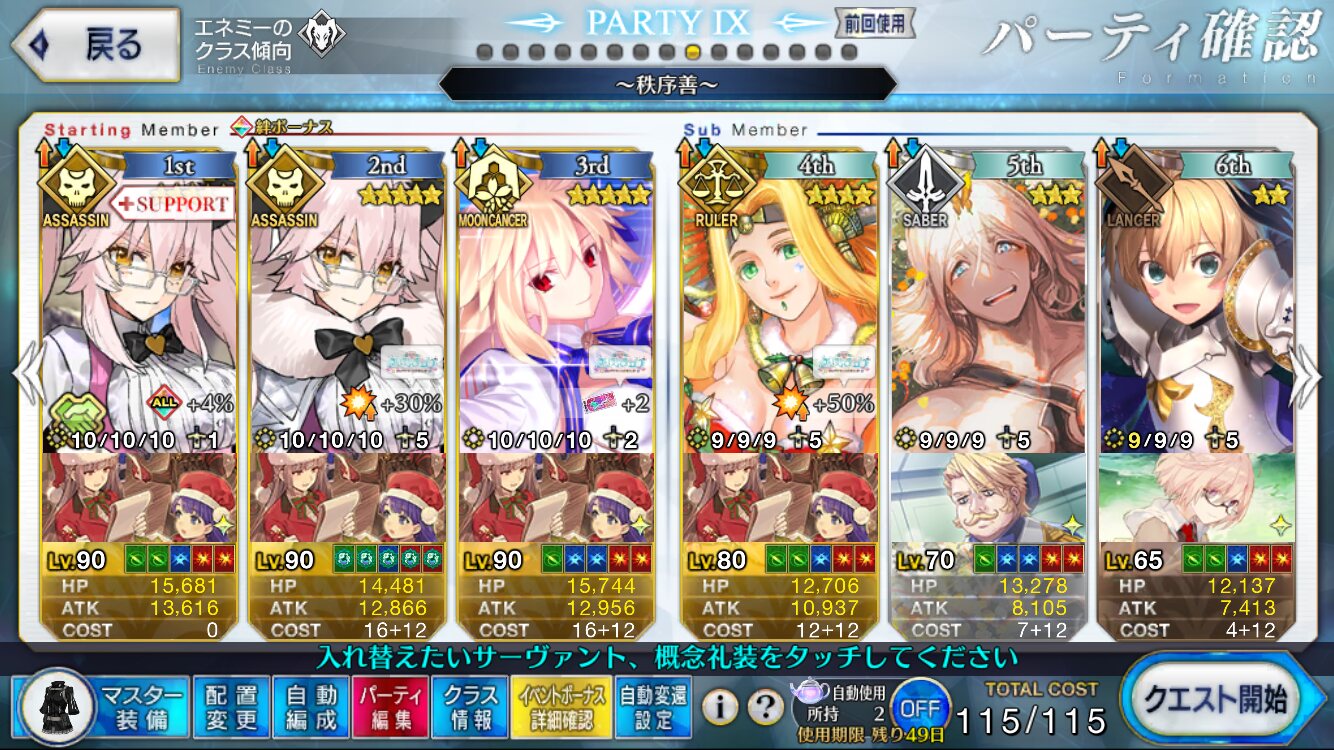 前衛にWコヤン&シエル、からのオダチェンすまないさんで90+安定周回構築完成したぞ