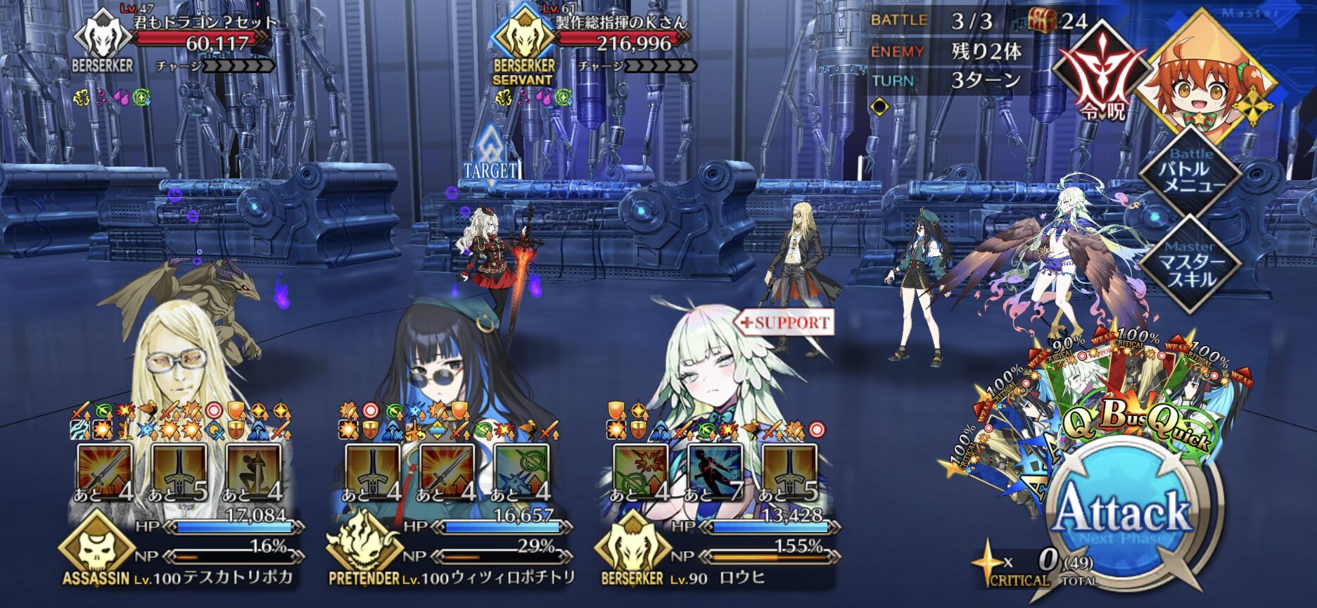 90+でも十分効率いいですわよバーサーカーでチャージ持ち推しを使える!と思ったらイドモン宝具でやけどつくからワンポチ増えるかやけどダメージを挟んでテンポ悪くなることに気がついてしまった……