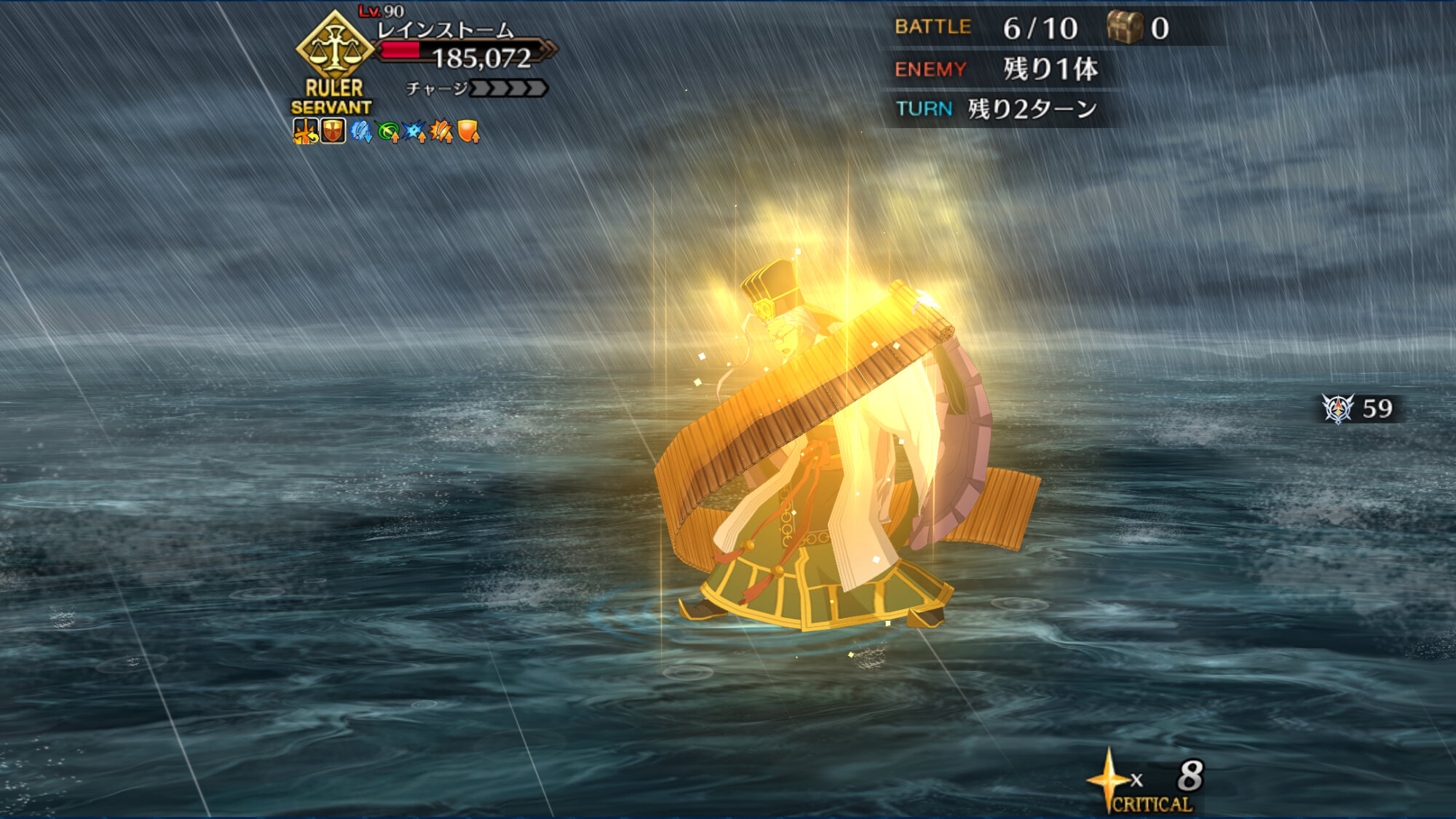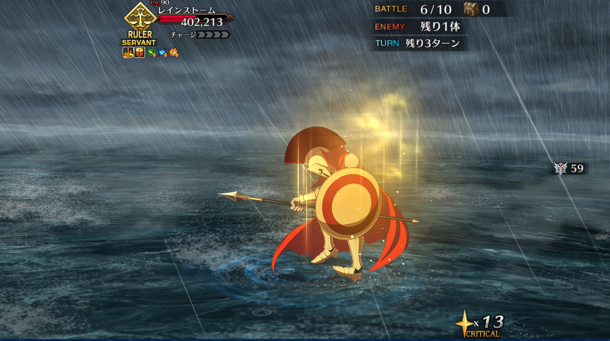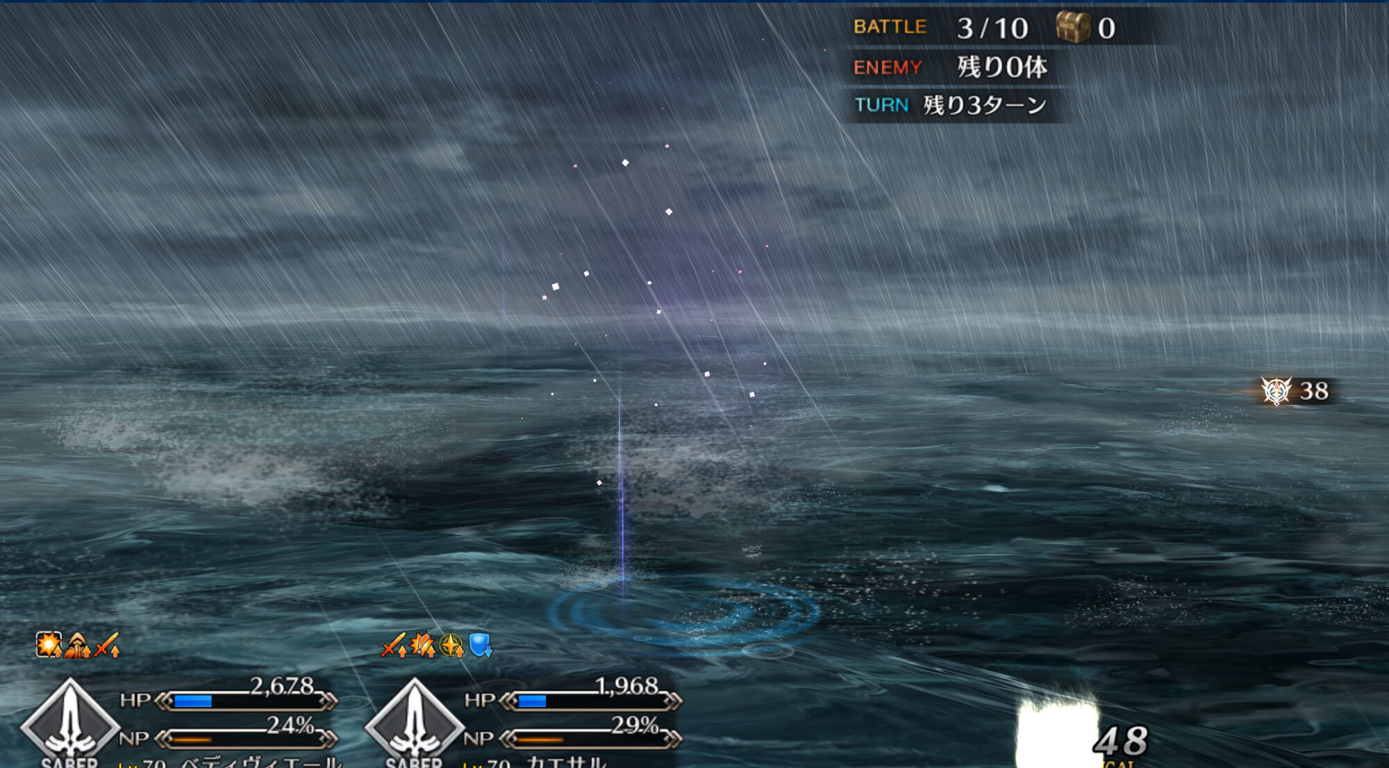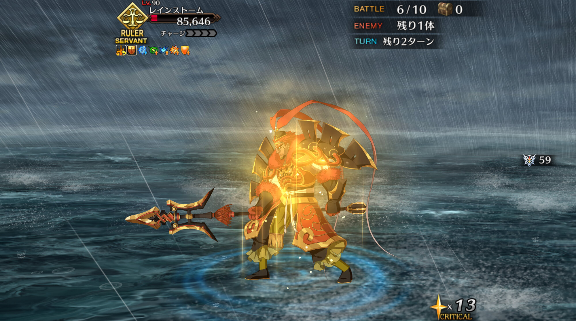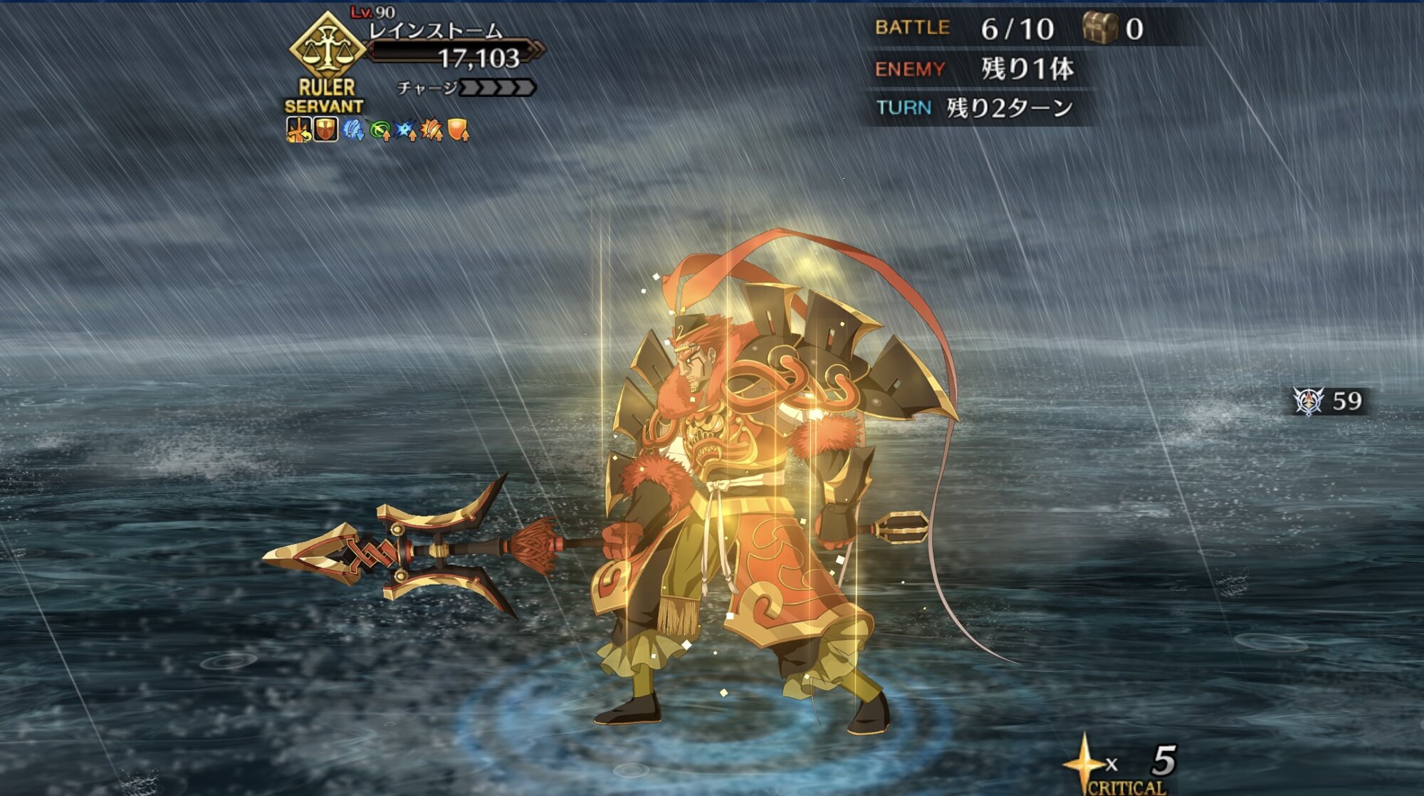 スキル3『我が愛はとこしえに』自身に無敵3回と自信を除く味方全体にガッツを3Tずつ付与&味方全体のHPを回復。完全耐久向けスキルだけど無敵とガッツ、回復どれも対象が微妙に異なるので注意