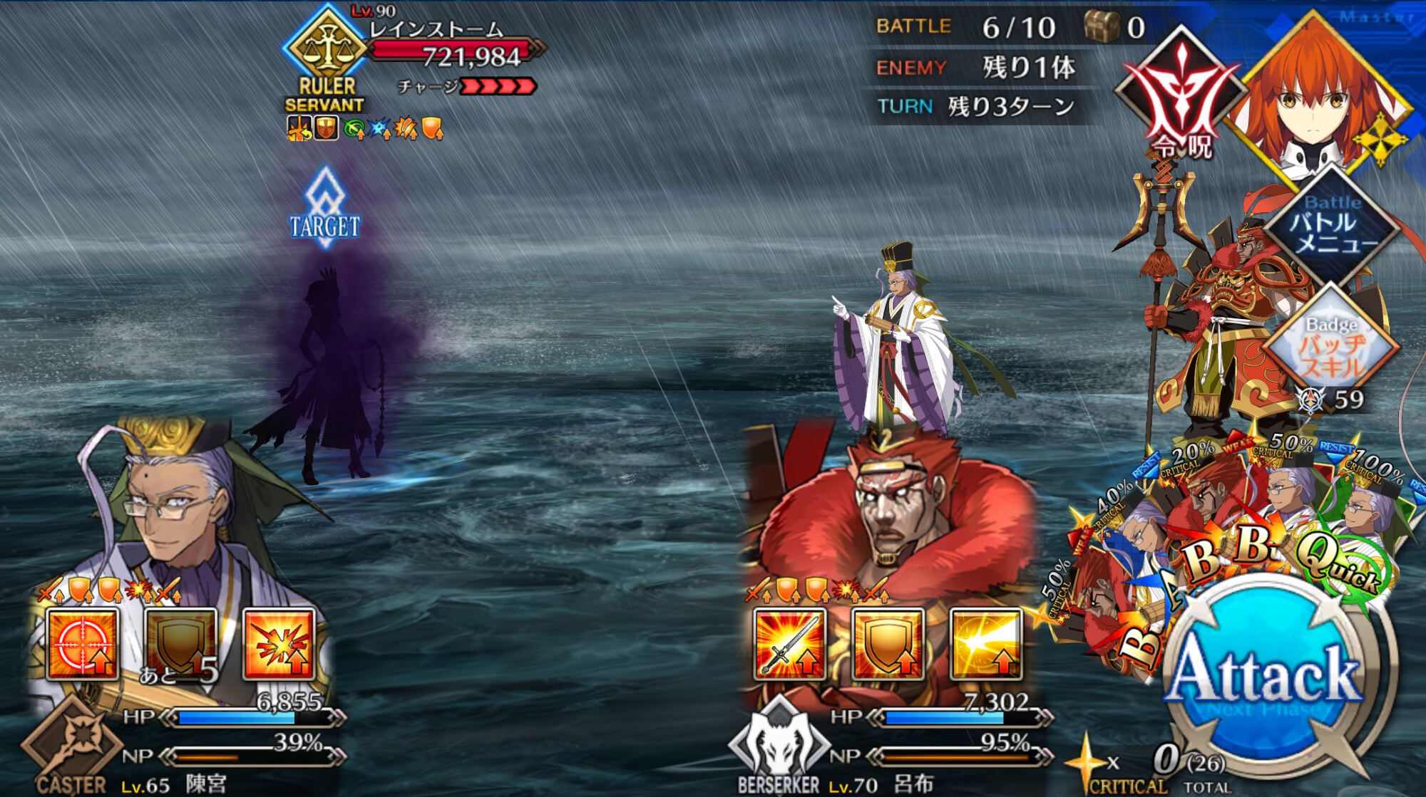 シナリオはちゃんと読めるうちに読んでおこうぜ?後で読む気力出ないことあるから気をつけるのだぞ太歳星君なんだけど敵6体編成かつ撃破時即補充かつワントップの雑魚取り巻きタイプってクエストが
