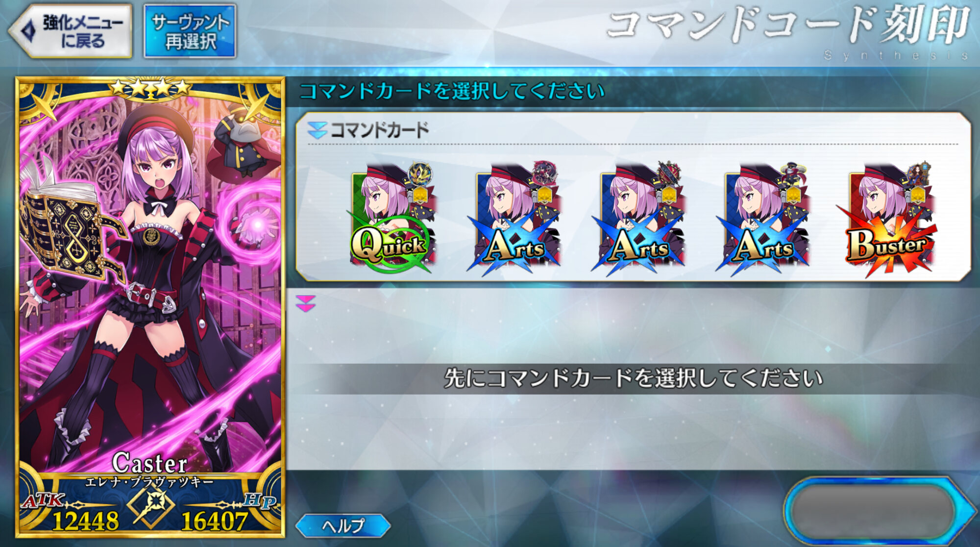 相性の良い低レアは宝具回転率を上げつつ耐久性を高めるパラケルススやアスクレピオスを推奨。呪いのダメージ性を上げたいのならサロメ辺りもオススメ