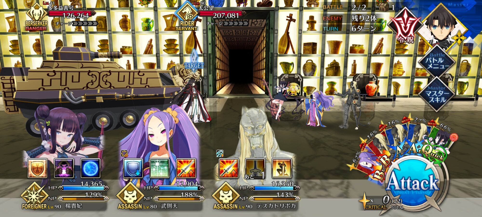 ちょっと早いクリスマスプレゼントだな!ダメージは色バフ+攻UPと攻UP+色バフ+宝具UPってかなり差が出るもんなんだな