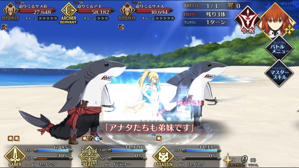 そっちよりロアの方を連想したわ。好意向けてる女性ゼロじゃろ。種火『問おう、あなたがわたしのマスターか』
