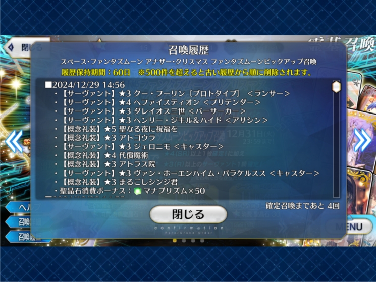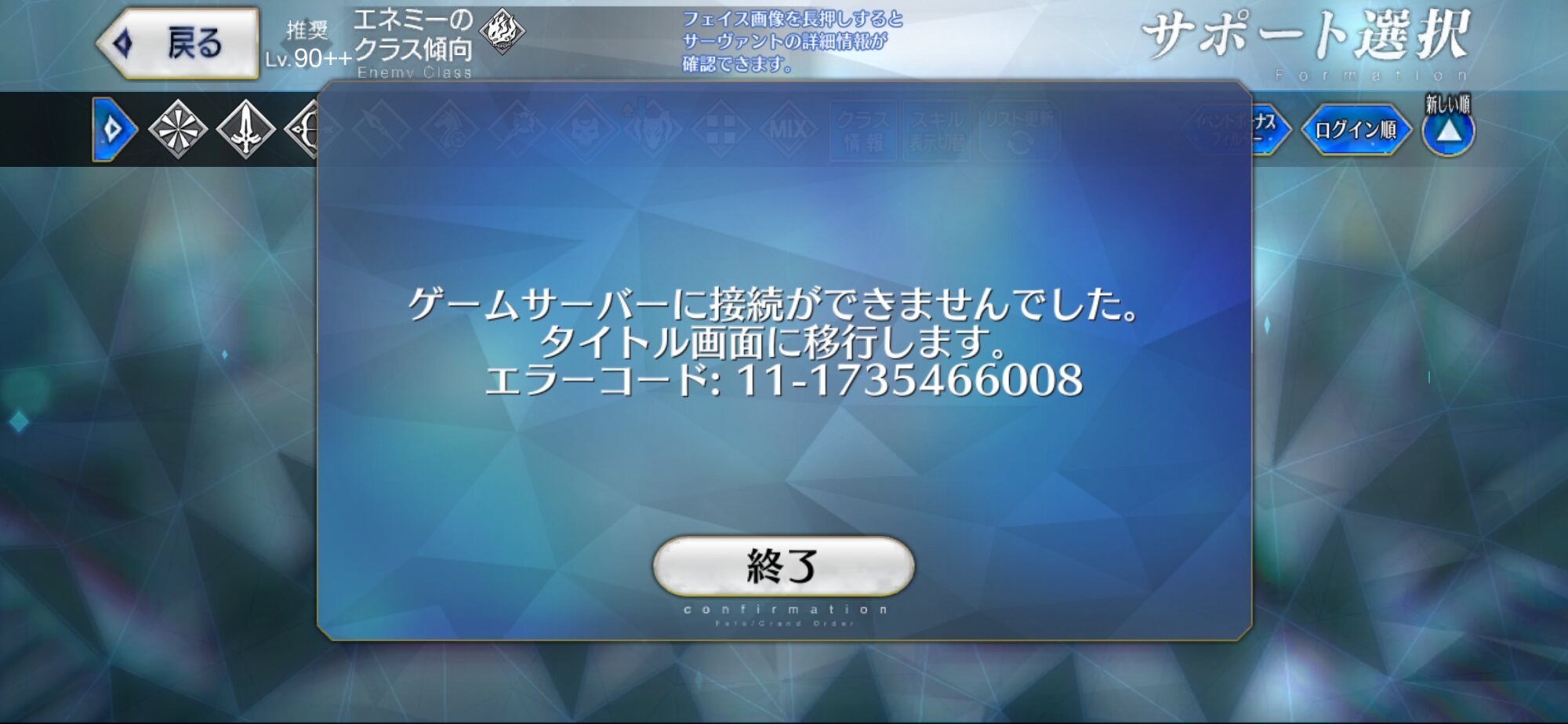 光&マーリン+オベロンシエル先輩+極地礼装くらいじゃない?完全にサーバーが落ちるなら諦めもつくが、たまに繋がるから辞め時が分からん