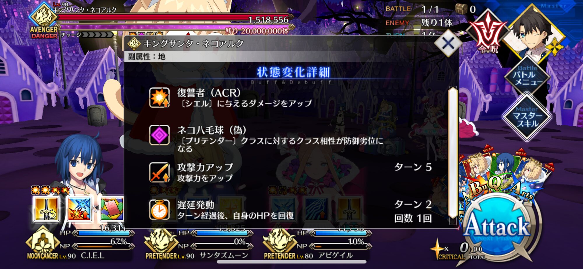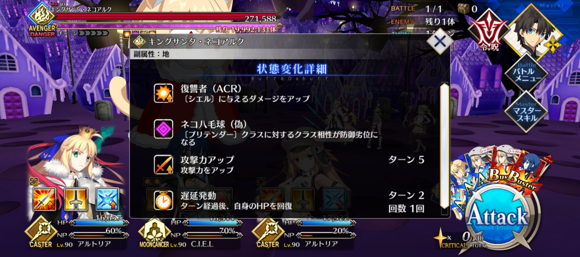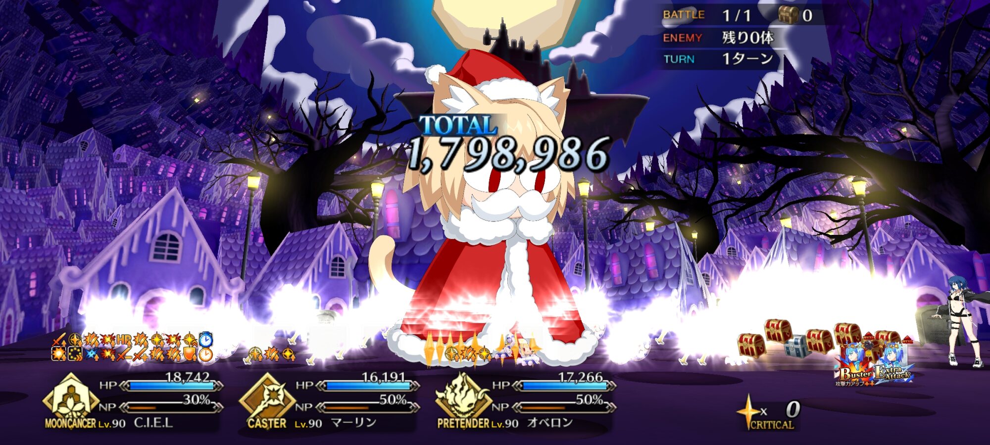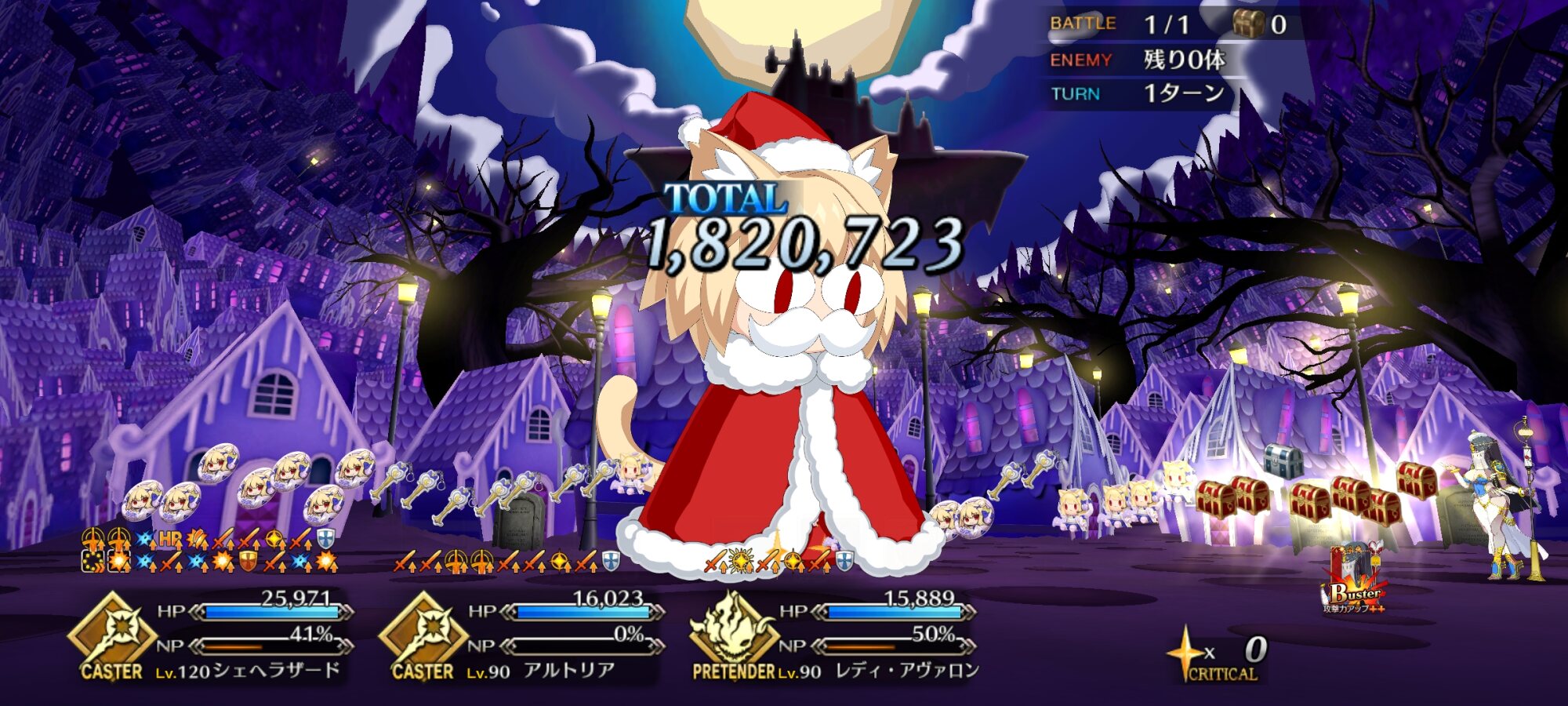 畜生卑劣なネコ野郎め!黙って狩られていればいいものを!その意味だと多少バフの倍率は下がるかガントで確定1ターン延長出来るカルデア戦闘服は実は激強なんだぁよ