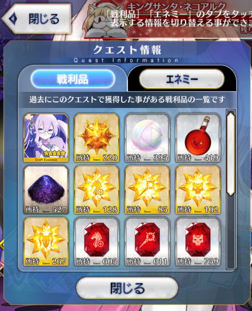 殴りのみシエル編成模索してたけど総耶制服がマスターピースだったでござる。あとは聖杯やら足跡やら合計で攻撃力2000ぐらい盛ってアペンド4開けてマーリンコヤンと登場時星20礼装で何とかなった