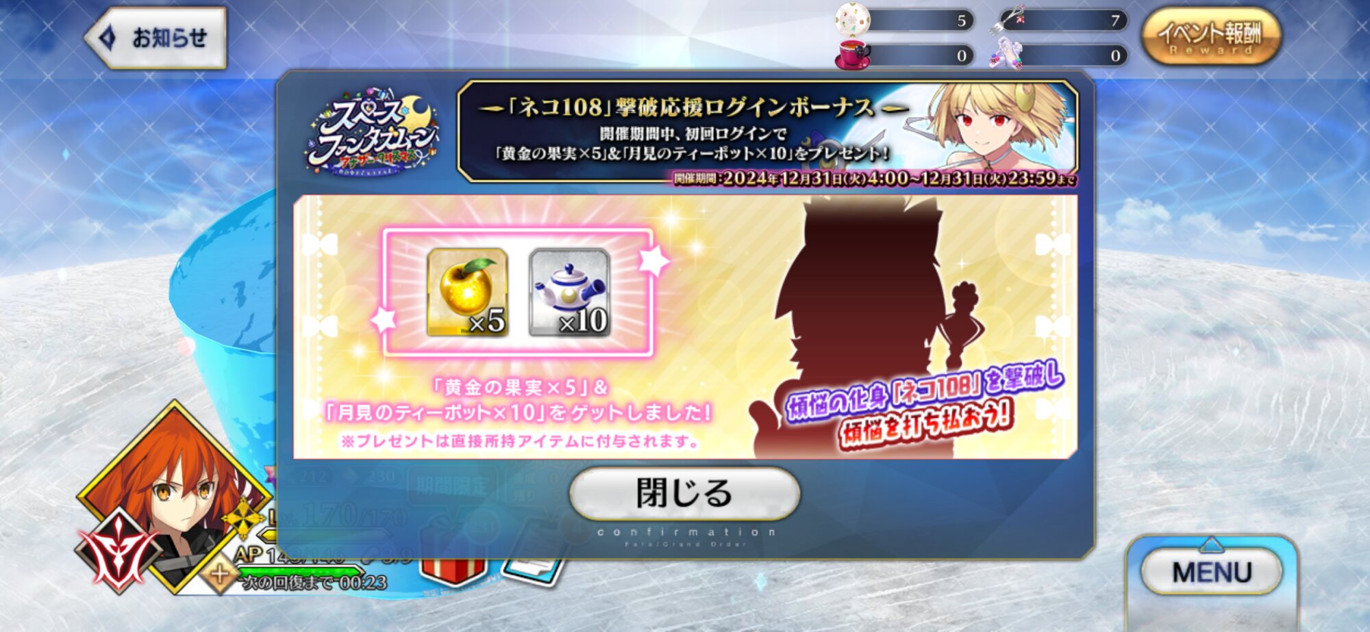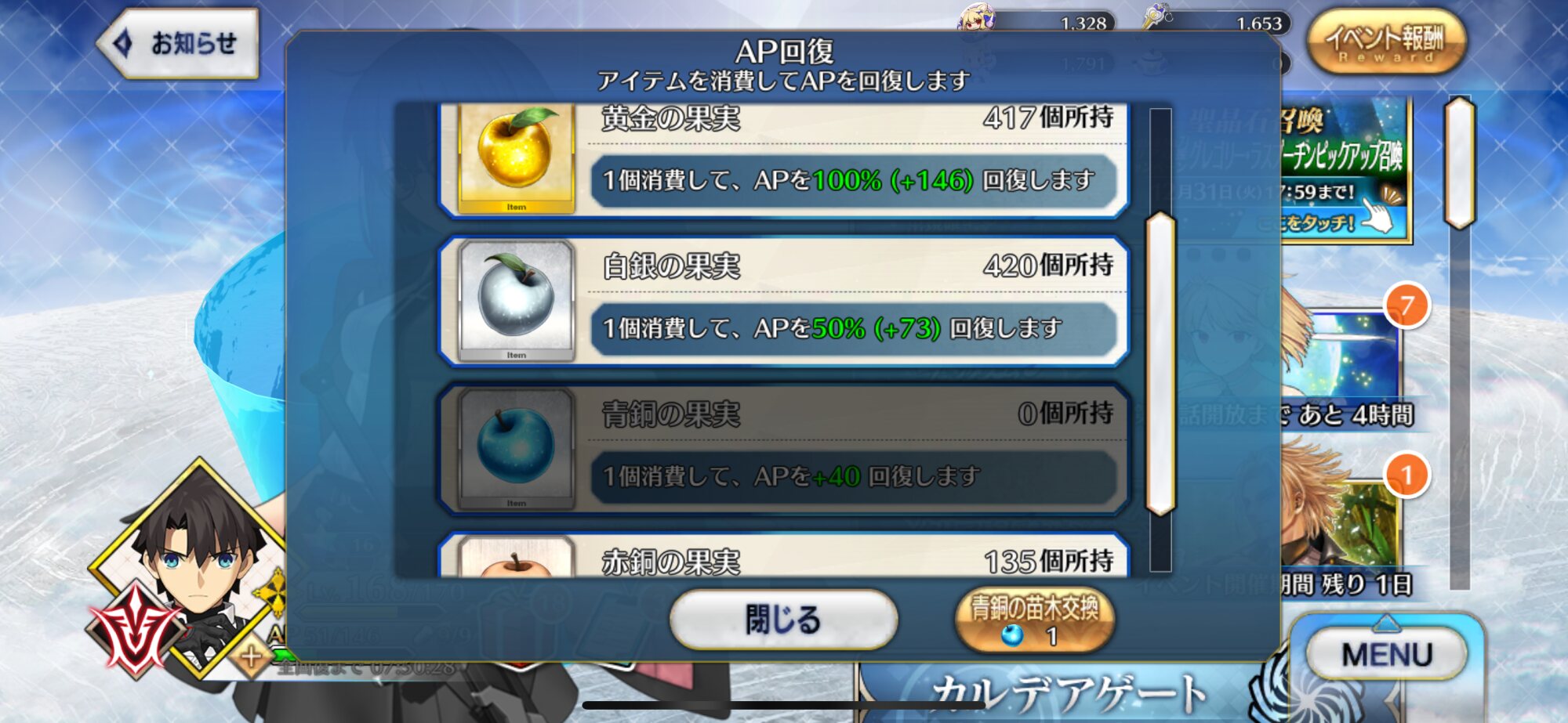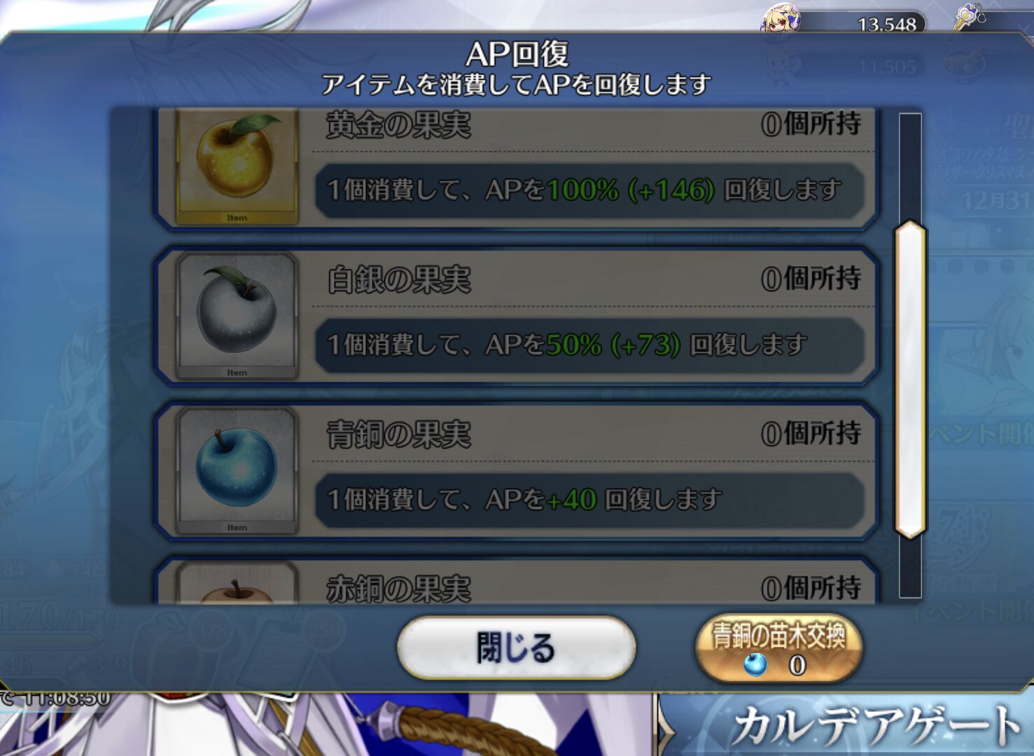 もったいない。初期勢かつ周回ほどほど勢の私のリンゴはまだ四桁あるぞ!