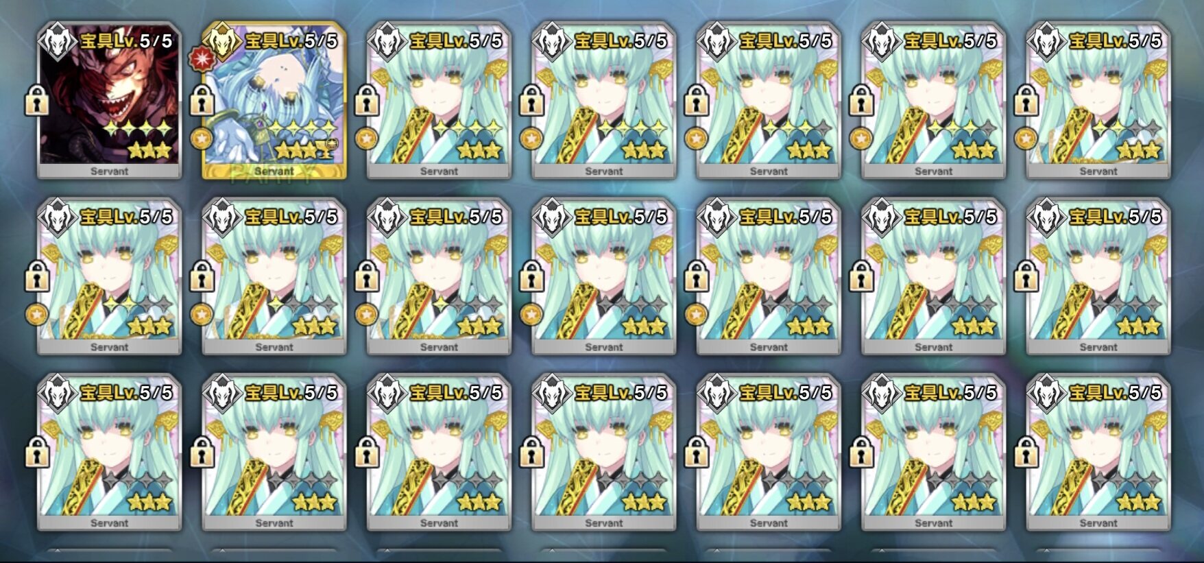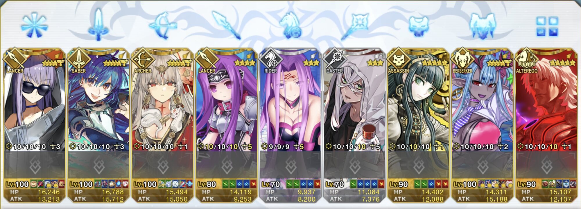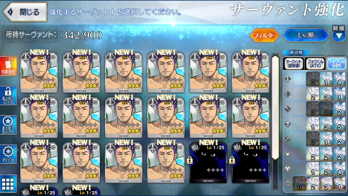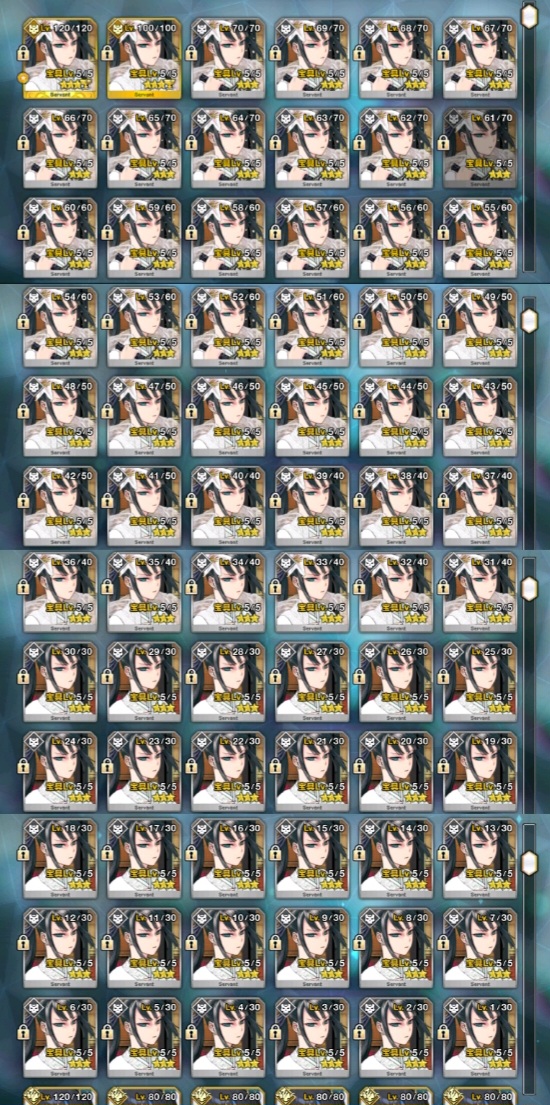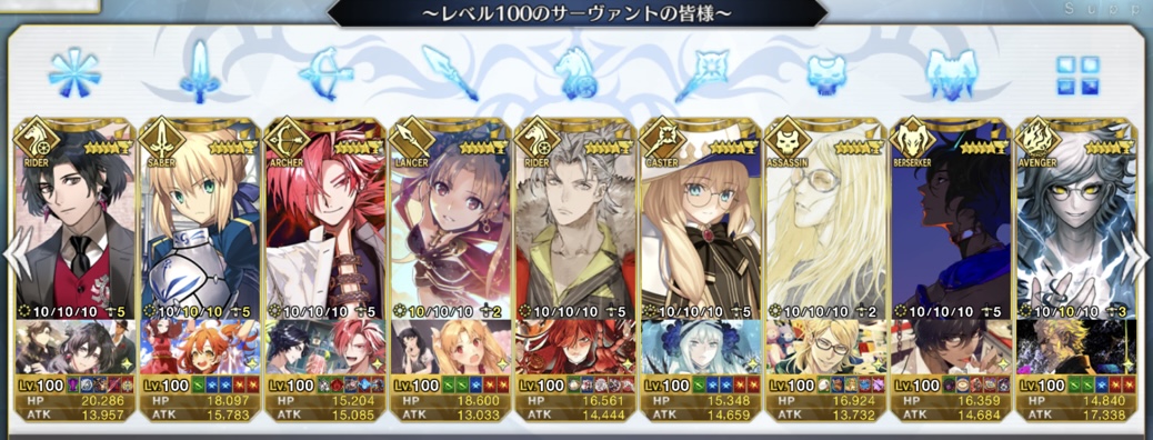 スキルマはしてるけどLV100を全クラス一騎いる状態は少なそうだよね。自分は低レアでも90か80で充分としてたから>>896