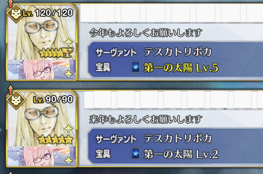だからその踏ん切りをつけるキッカケや要素が必要なんだ。ウチのカルデアではそう決まってるんだ私は逆に120は一人だけ!って決めてるからレベル100まではポンポン使ってるなあ