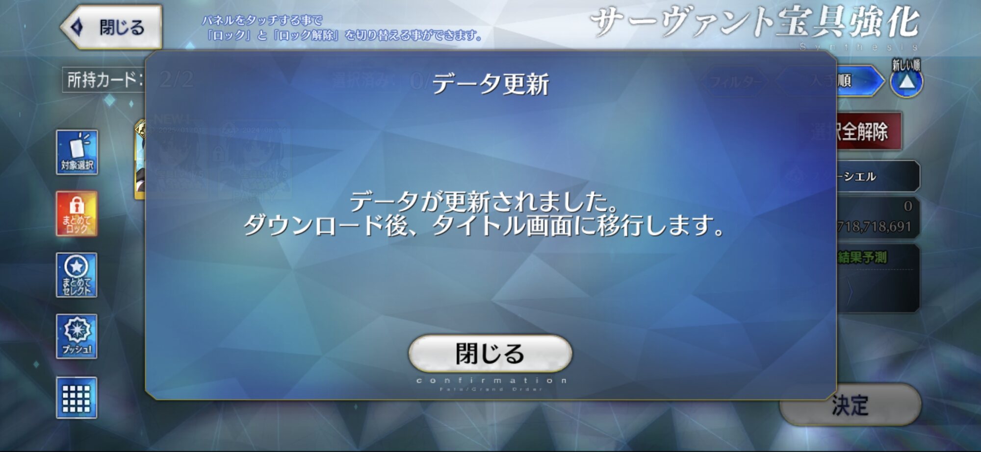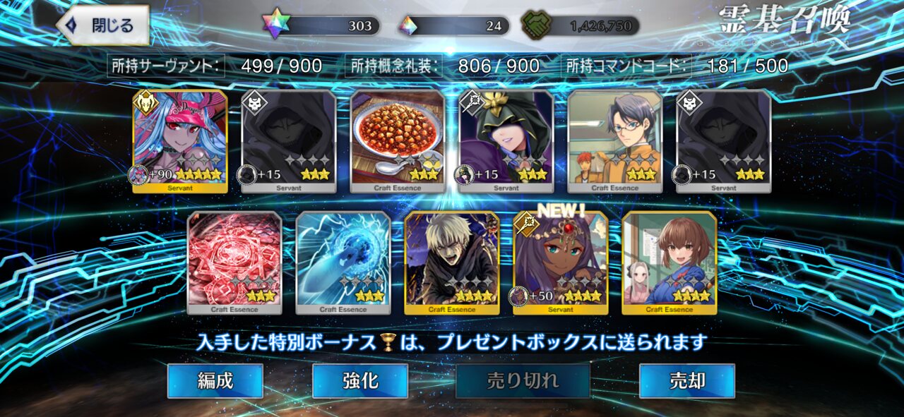 福袋もう一個はダブったけど、新年頑張ります118→120に必要な種火の数って種火周回56周でいいのか、結構楽だな?(感覚麻痺)