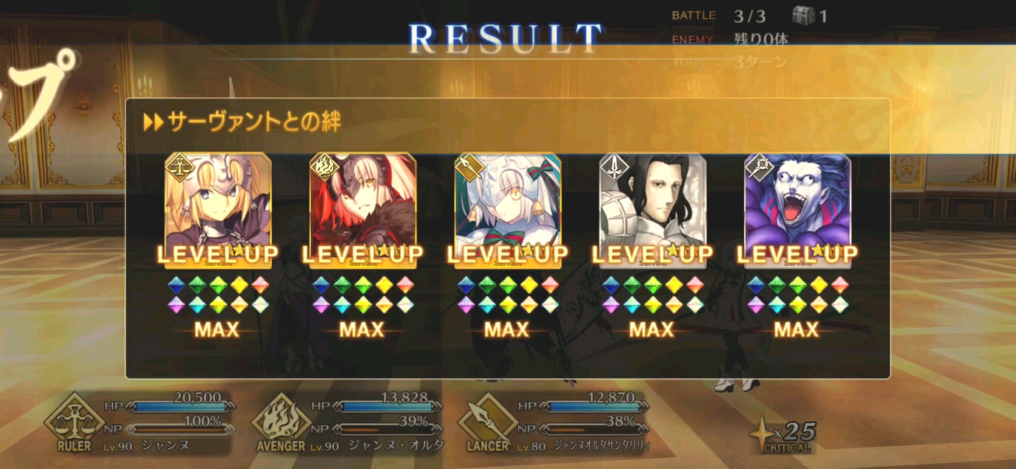 100→120に必要な種火が500箱分だからね、半分じゃ足りなかったよね……