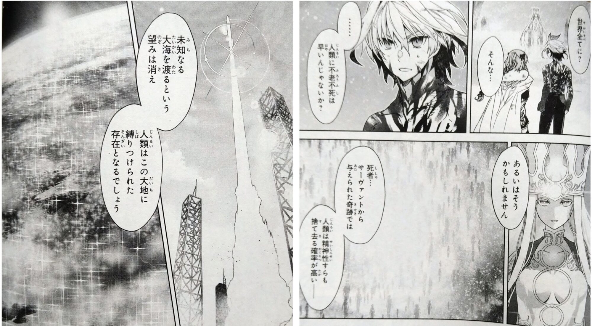 蒼輝銀河「だから全人類がサーヴァントになる必要があったんですね」きのこ的には「壮大な世界観だからこそちっぽけな人間が足掻くドラマが美しい」なのかもしれんが、あまりにも背景美術の出来が良すぎて「もっと見せろや菌糸類」とどいつもこいつも思っている。