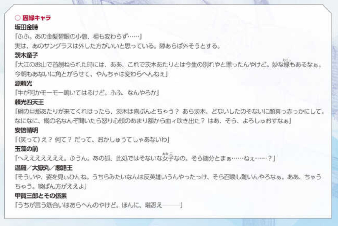 ・甲賀三郎…DLCで絡みのあった伊吹童子が特攻にいない