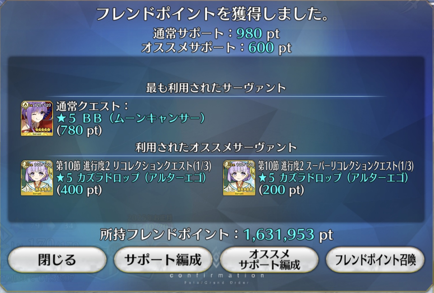 黒姫が星4だったから、ワンチャン甲賀三郎が星5かと思ったけど、また今度の機会に可能性を見せてくれ
