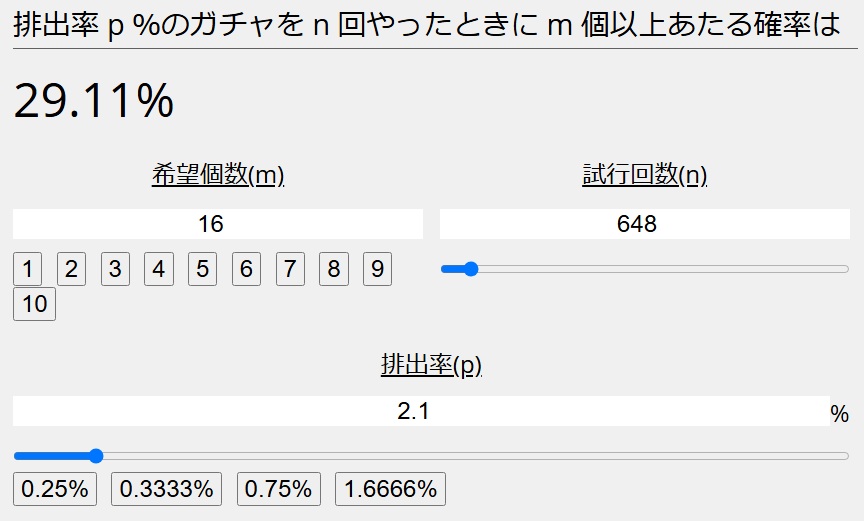12%って言ってる人は端数切り捨てる積もりで六十連分ぐらい切り捨ててるから計算合わない(11連ガチャを10連で計算してるか、1万168個を1万150個で計算してる)