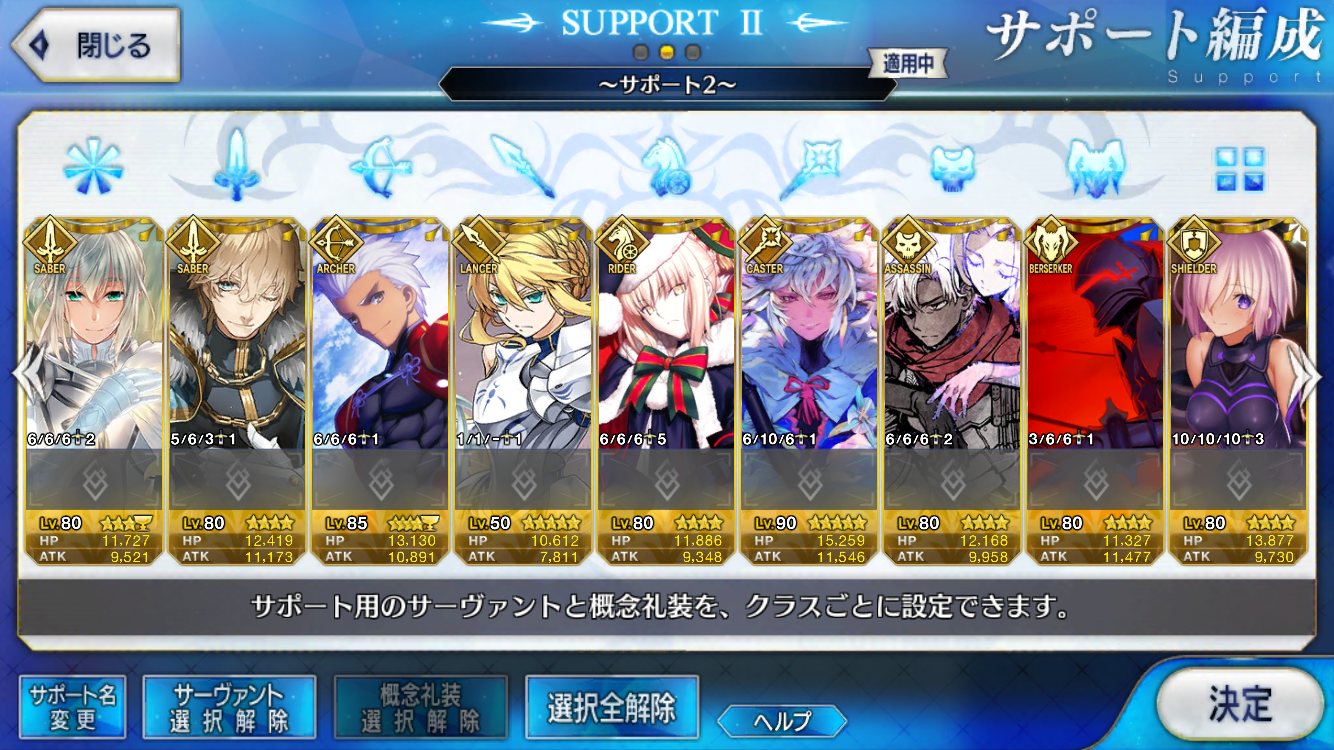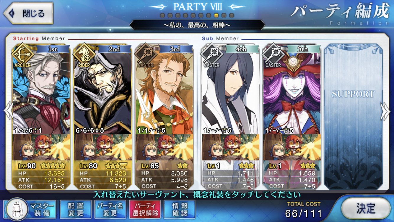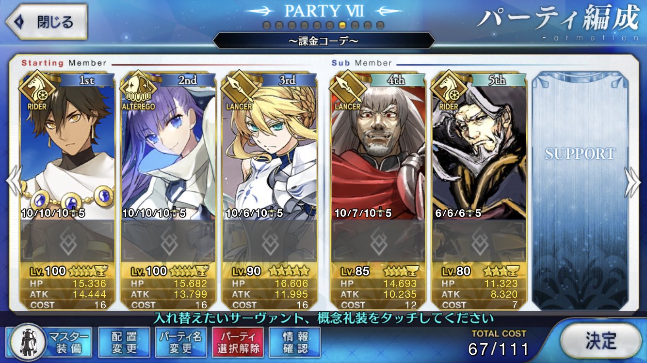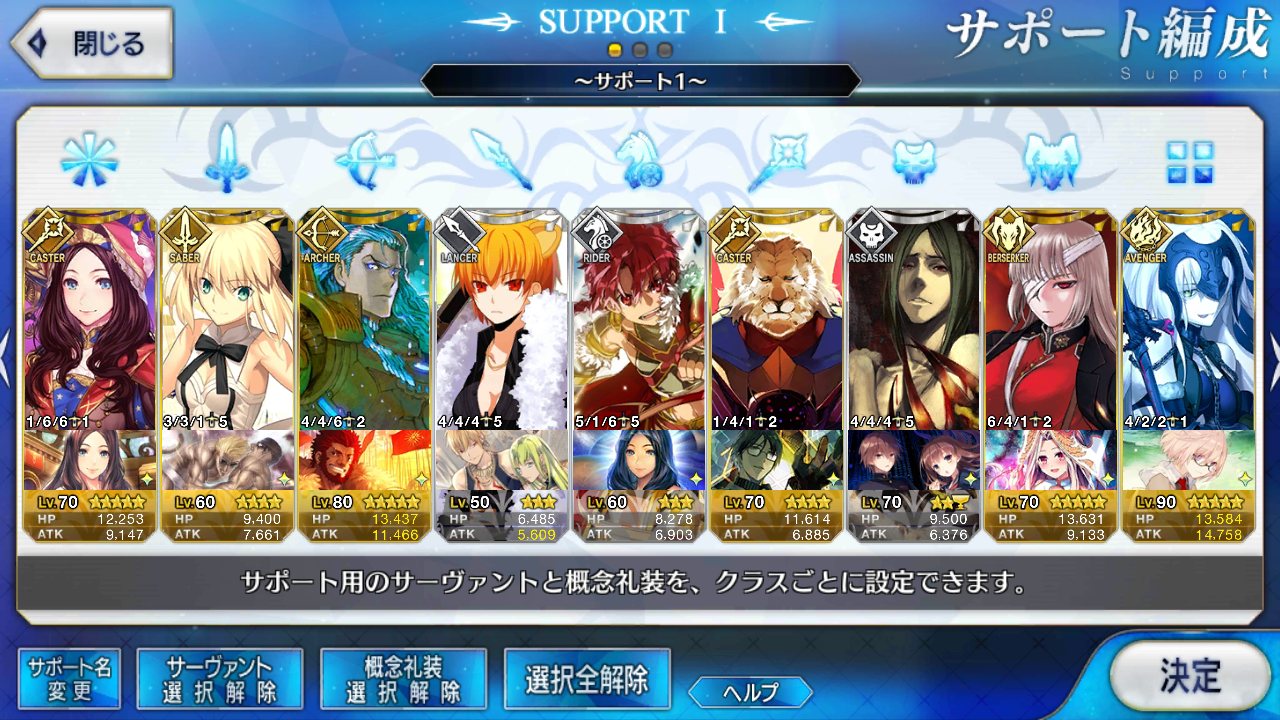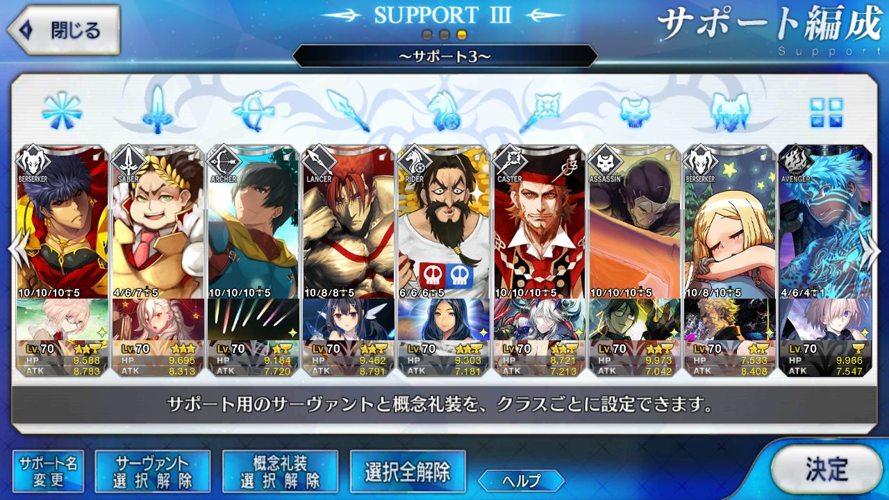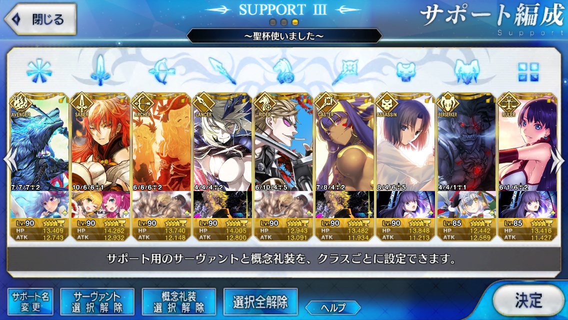 (ガウェイン好きすぎて6章1日でクリアし、ストモガチャから引き当ててその日のうちにスキマしたやつ)全サポ枠埋められるほど星5持ってないです(半ギレ)