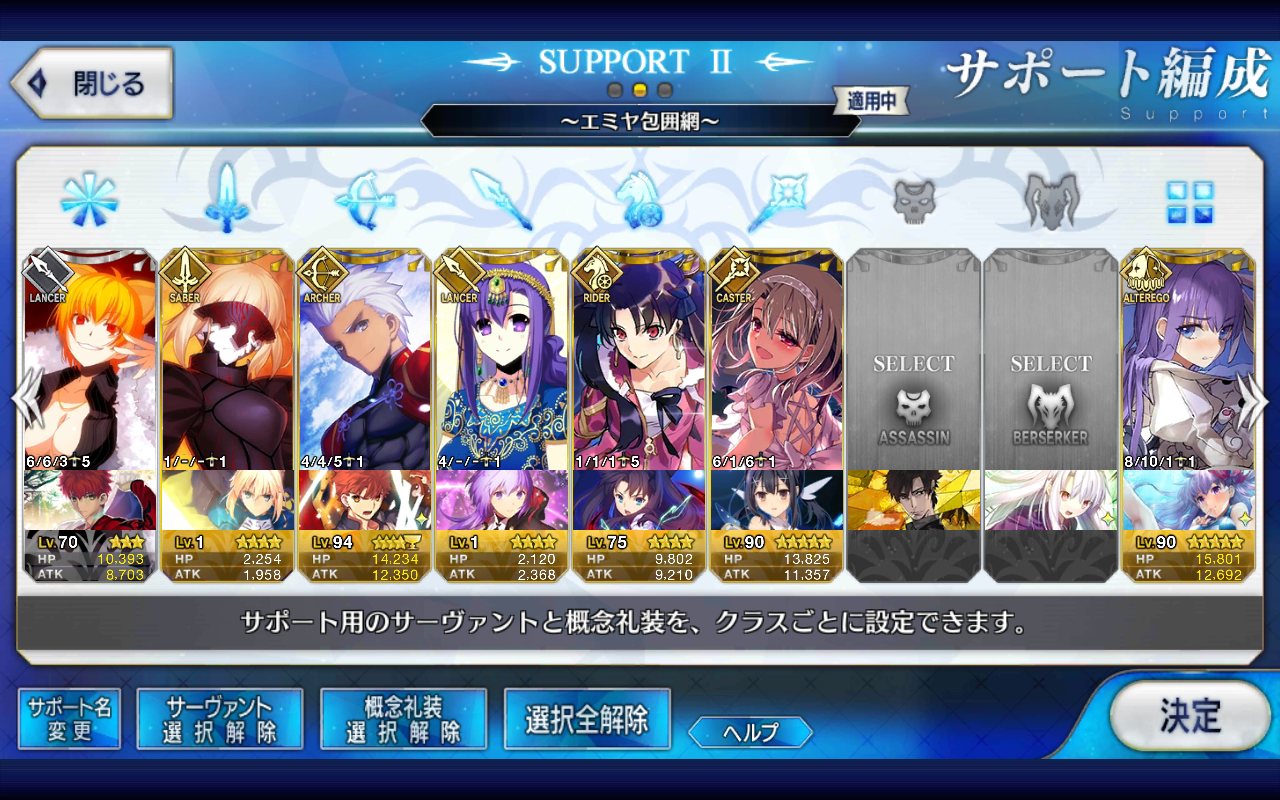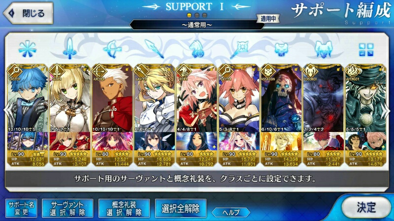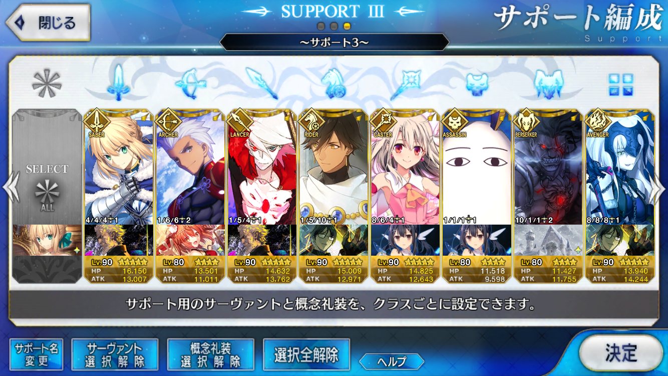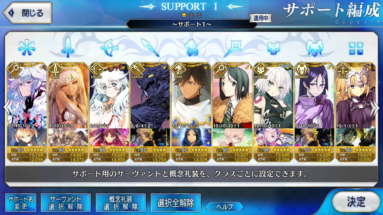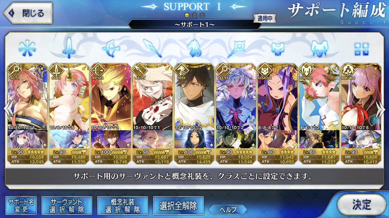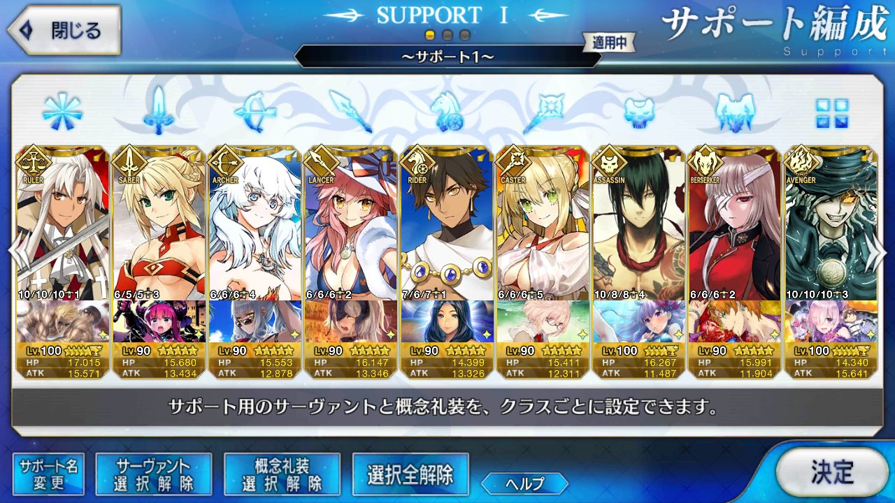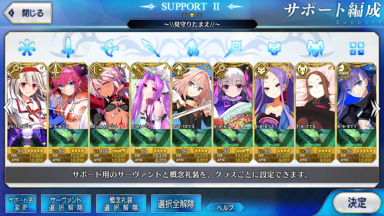 (ガウェイン好きすぎて6章1日でクリアし、ストモガチャから引き当ててその日のうちにスキマしたやつ)全サポ枠埋められるほど星5持ってないです(半ギレ)