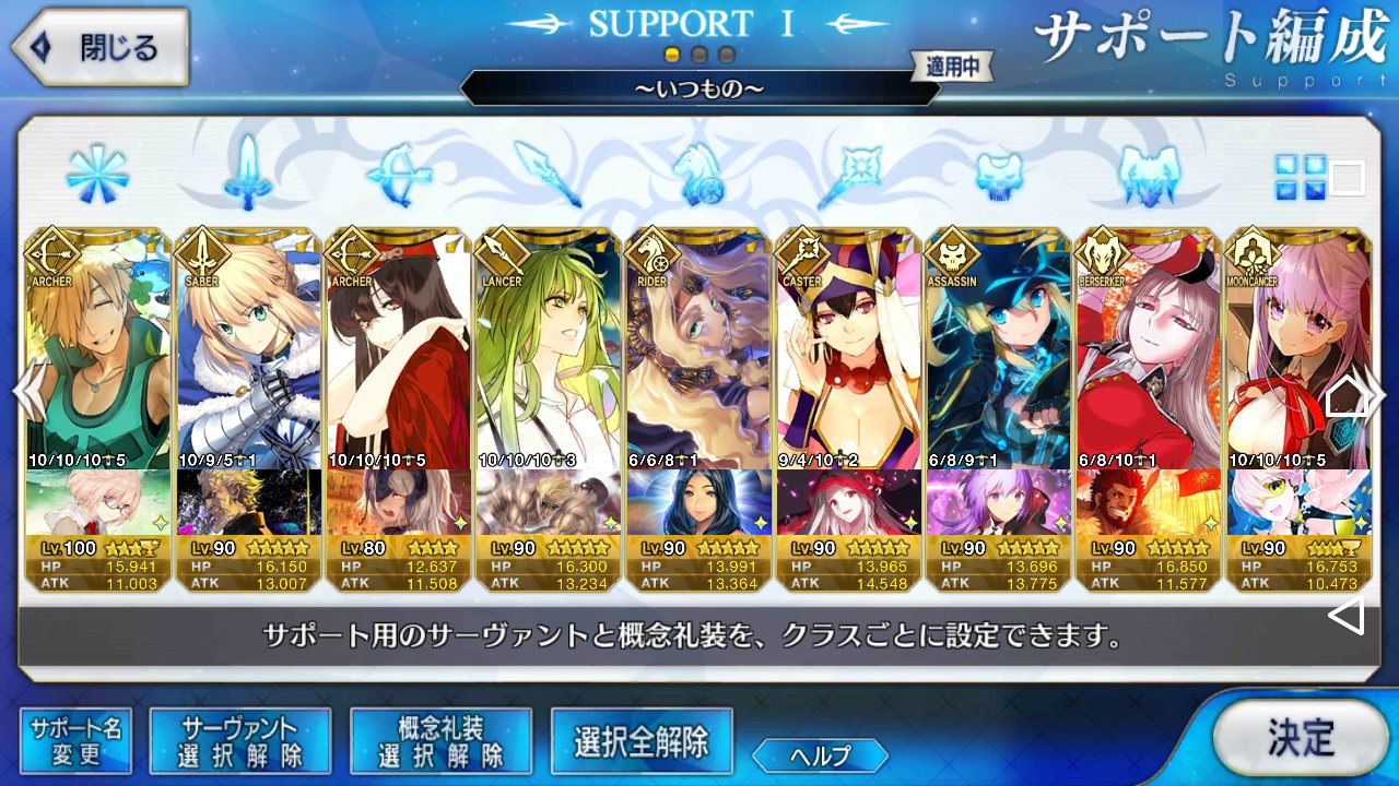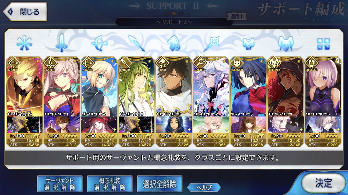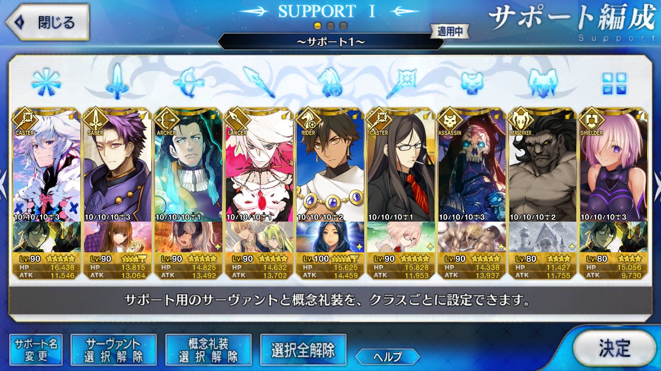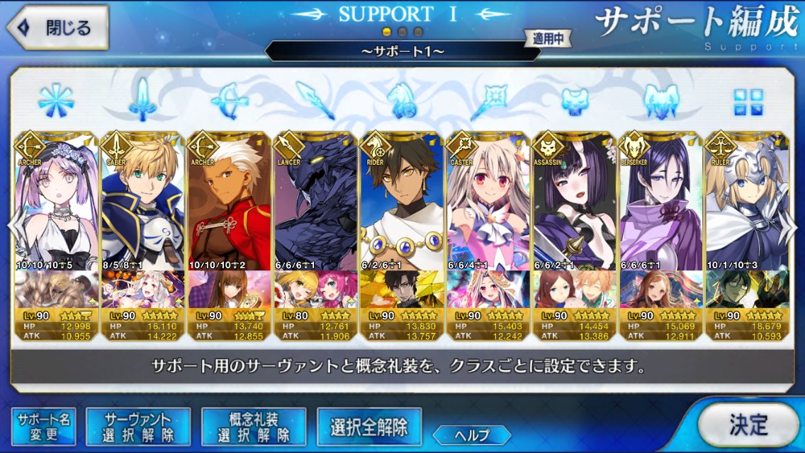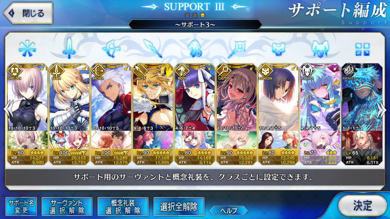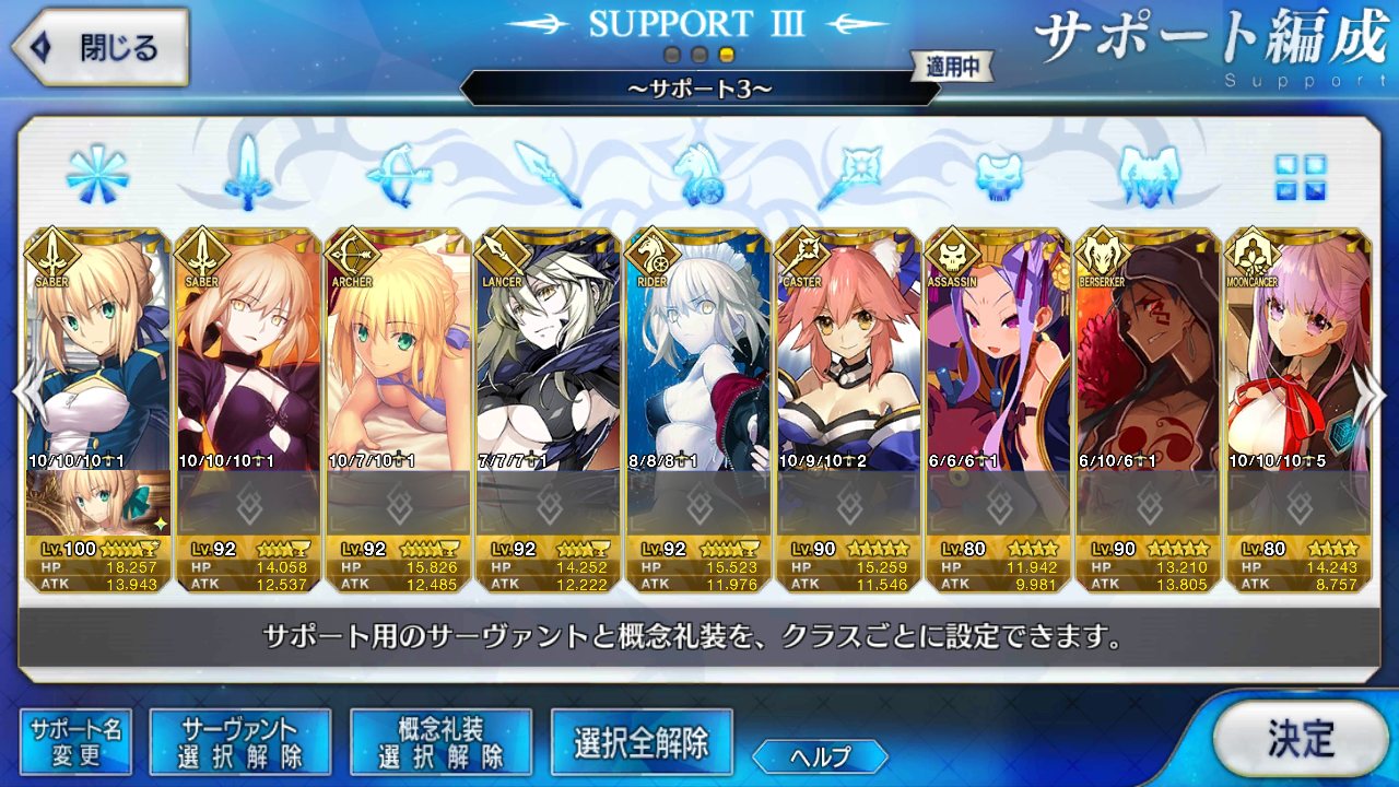 (ガウェイン好きすぎて6章1日でクリアし、ストモガチャから引き当ててその日のうちにスキマしたやつ)全サポ枠埋められるほど星5持ってないです(半ギレ)