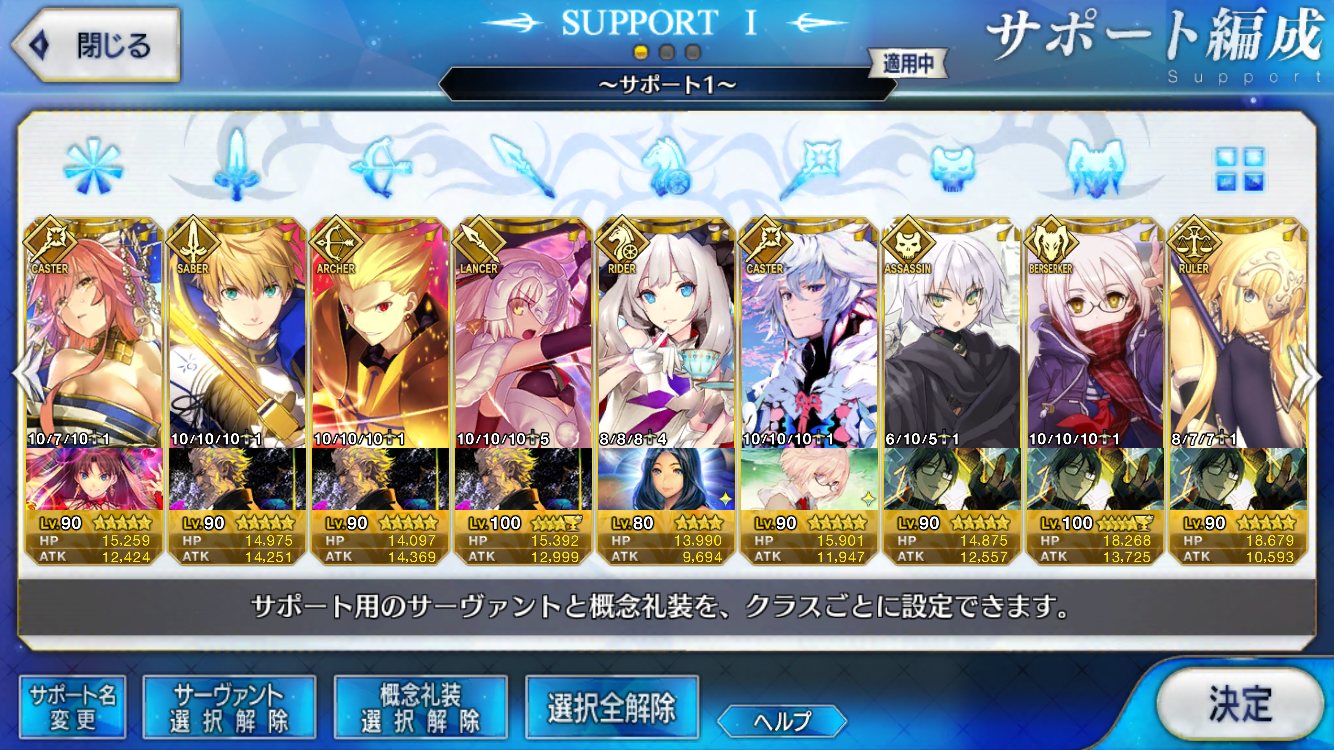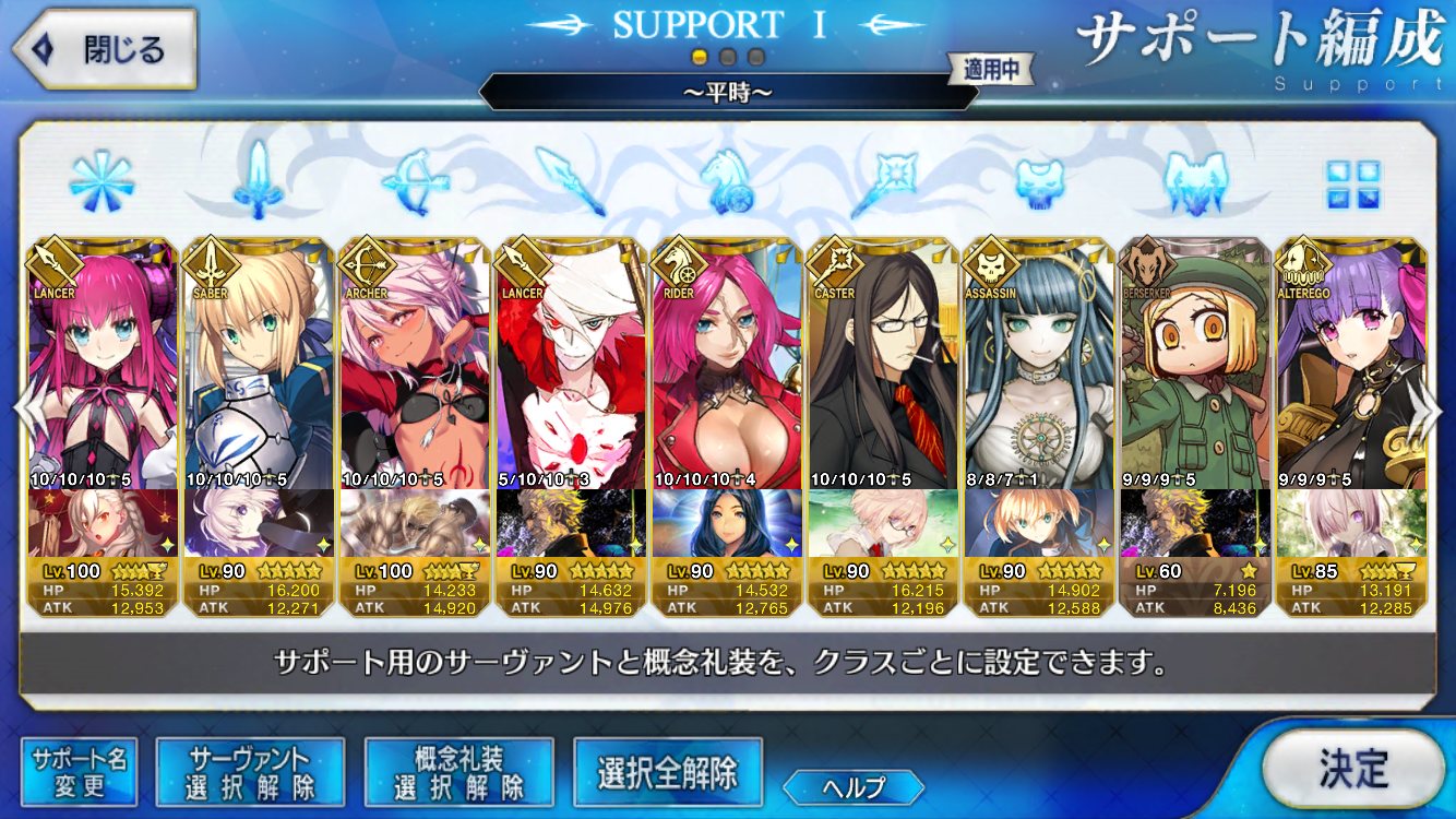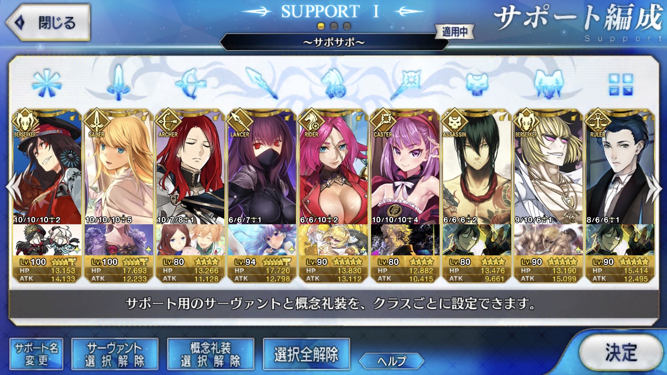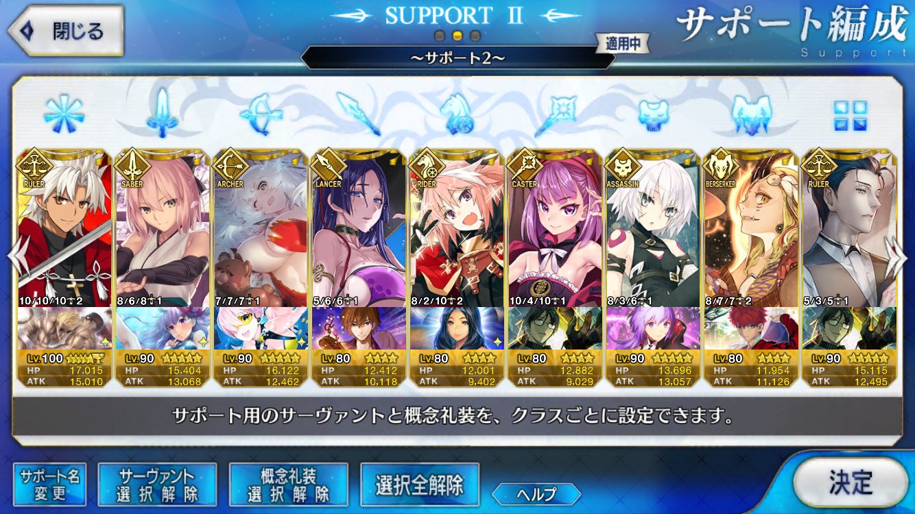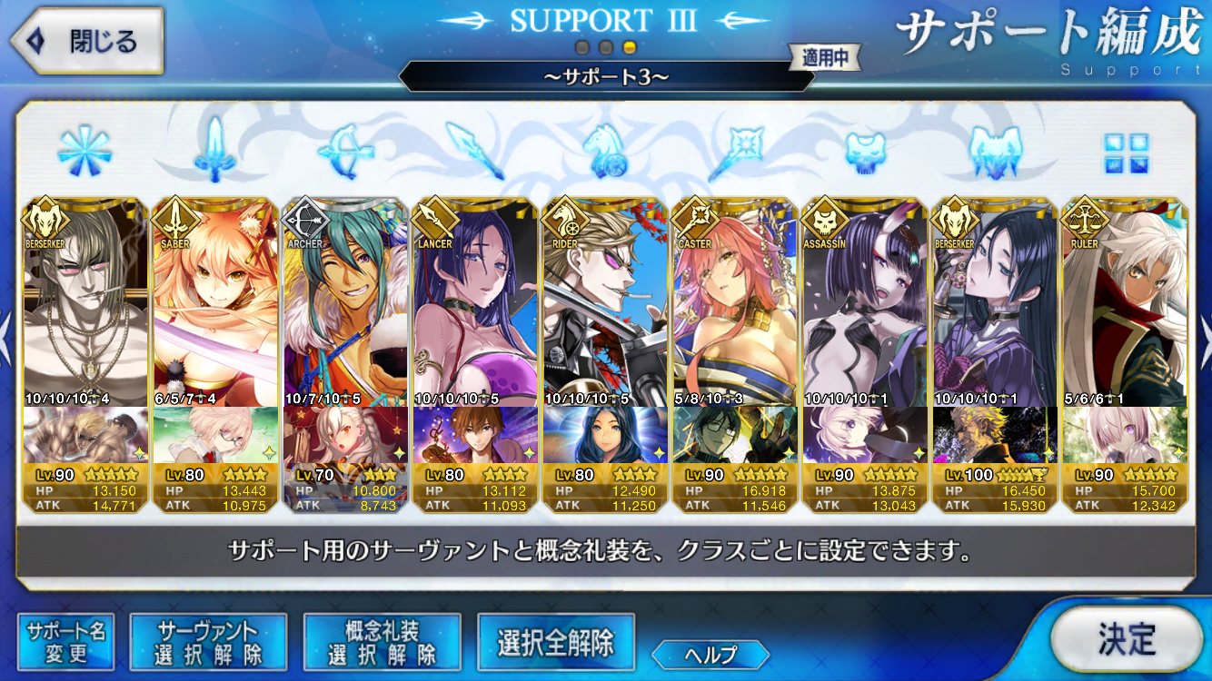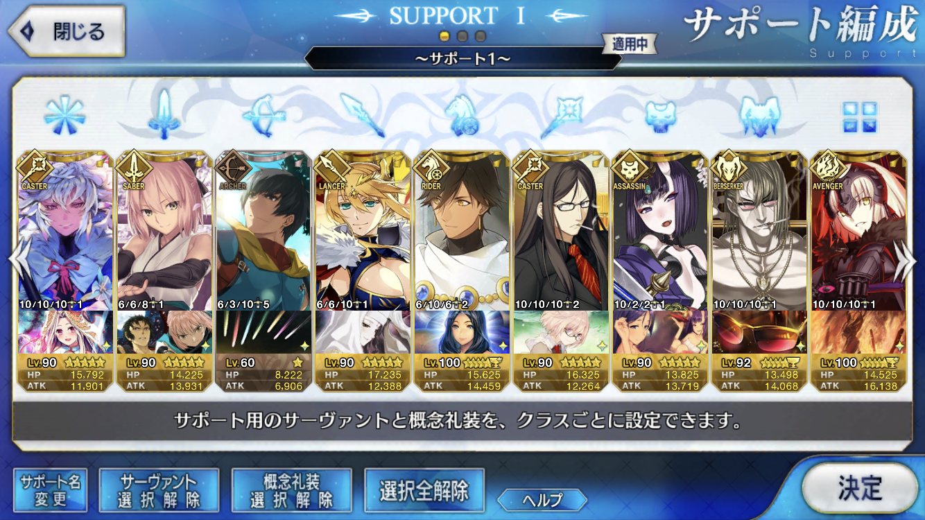 (ガウェイン好きすぎて6章1日でクリアし、ストモガチャから引き当ててその日のうちにスキマしたやつ)全サポ枠埋められるほど星5持ってないです(半ギレ)