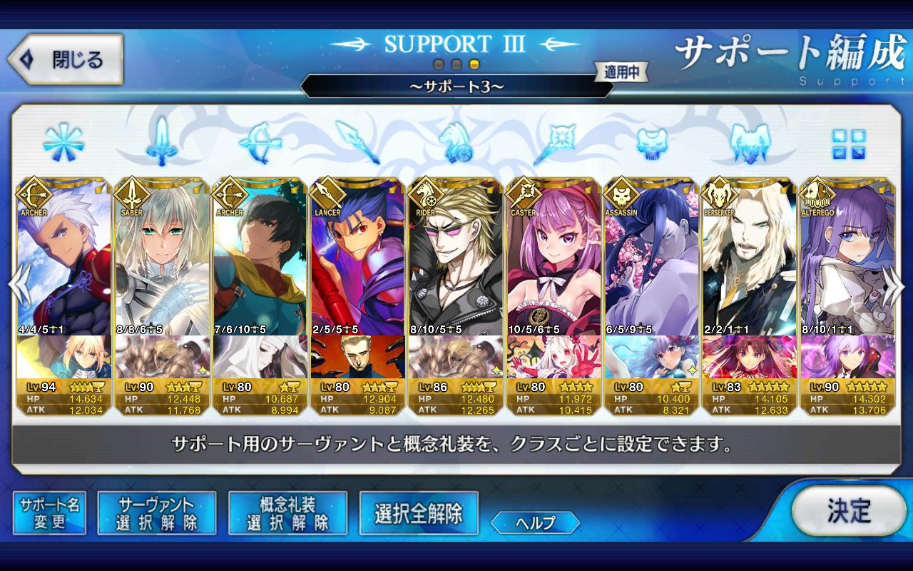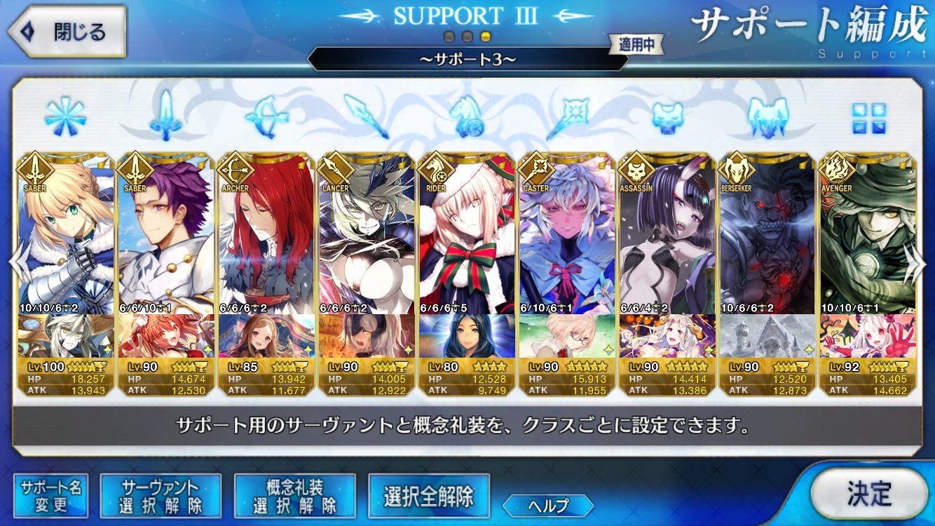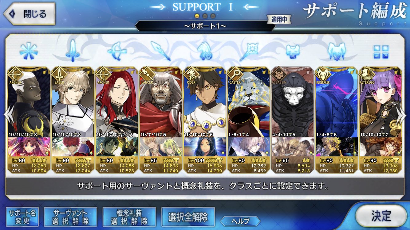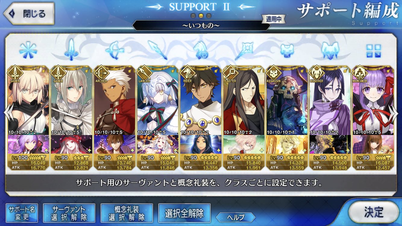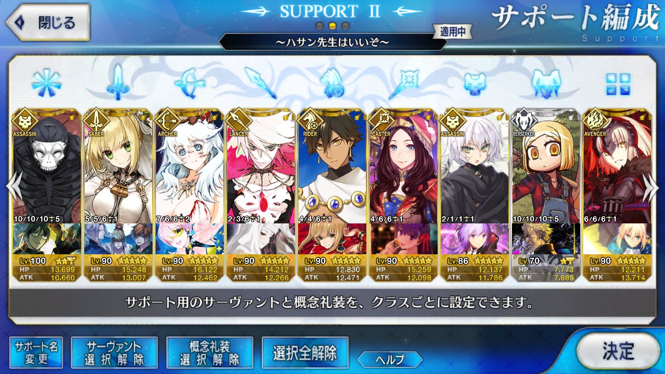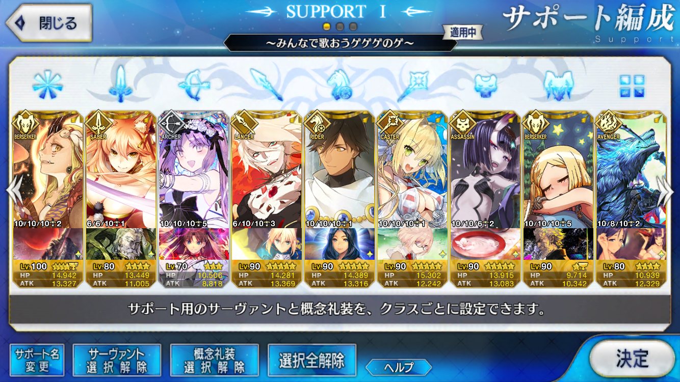 (ガウェイン好きすぎて6章1日でクリアし、ストモガチャから引き当ててその日のうちにスキマしたやつ)全サポ枠埋められるほど星5持ってないです(半ギレ)