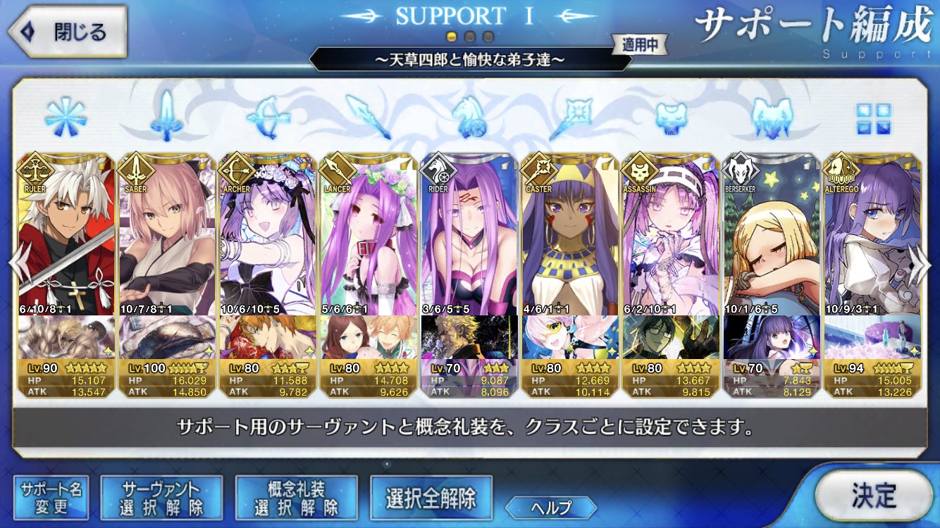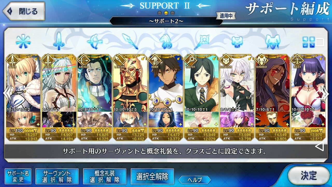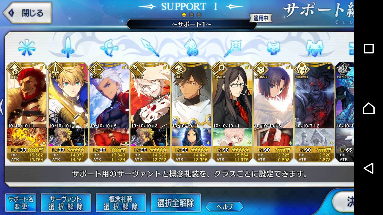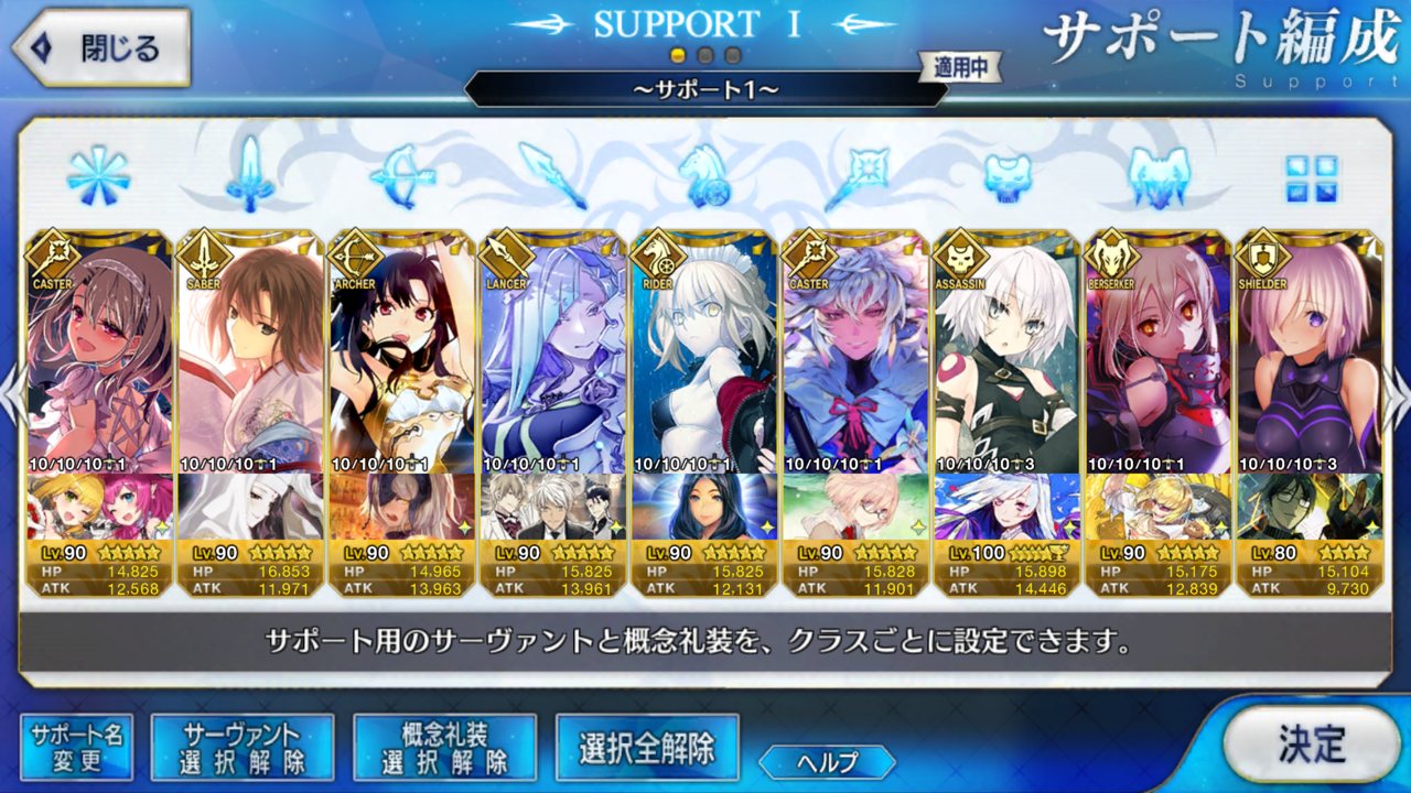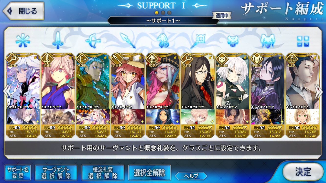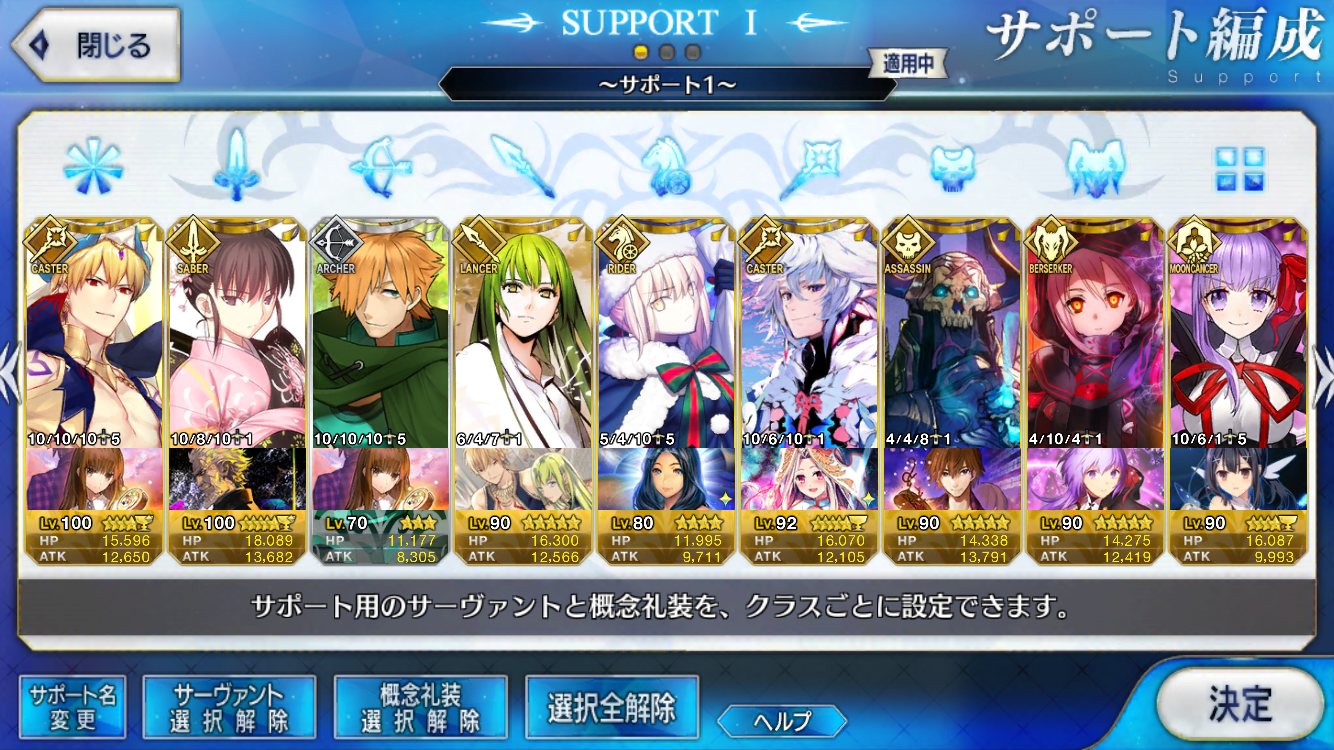 (ガウェイン好きすぎて6章1日でクリアし、ストモガチャから引き当ててその日のうちにスキマしたやつ)全サポ枠埋められるほど星5持ってないです(半ギレ)