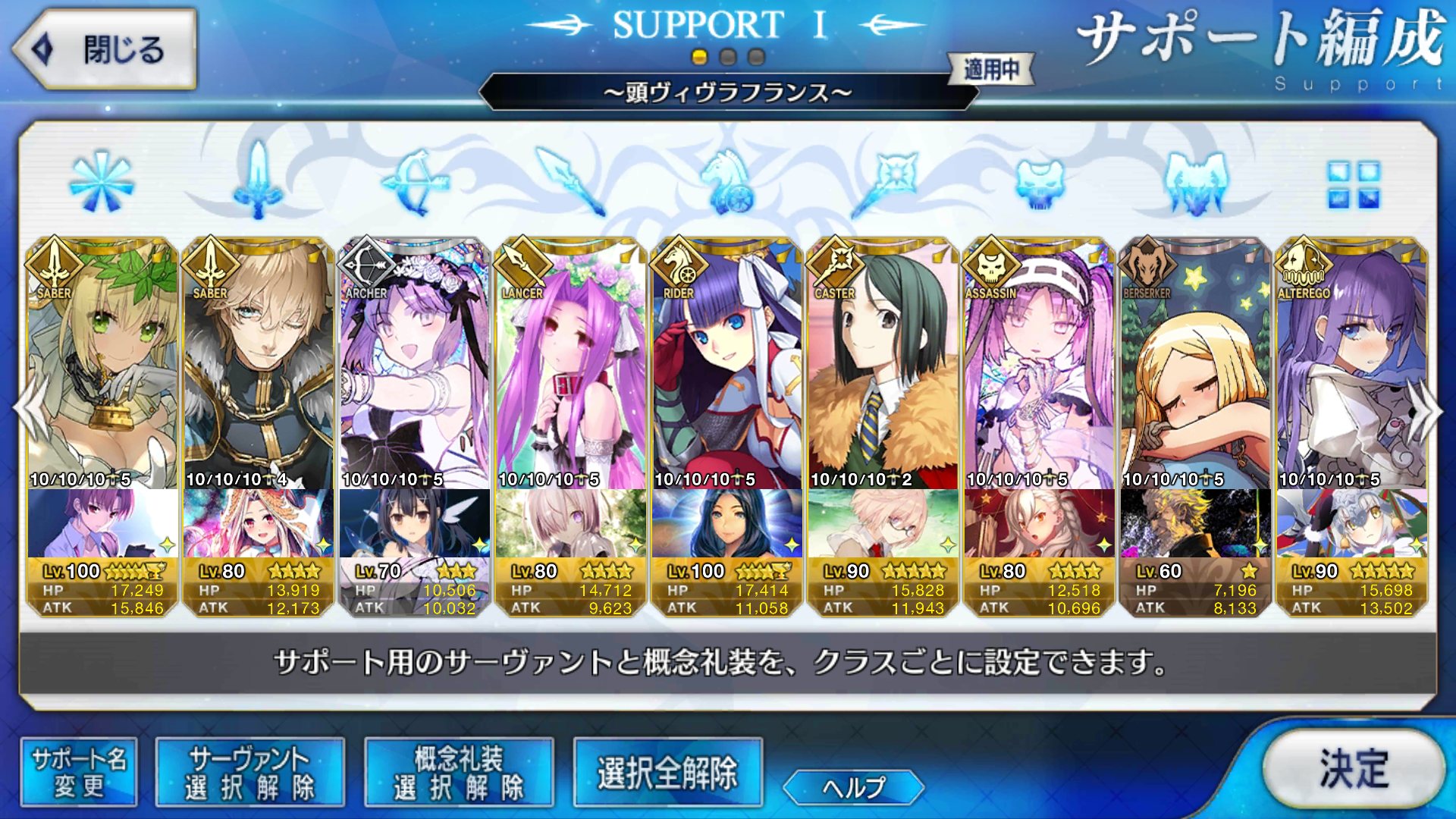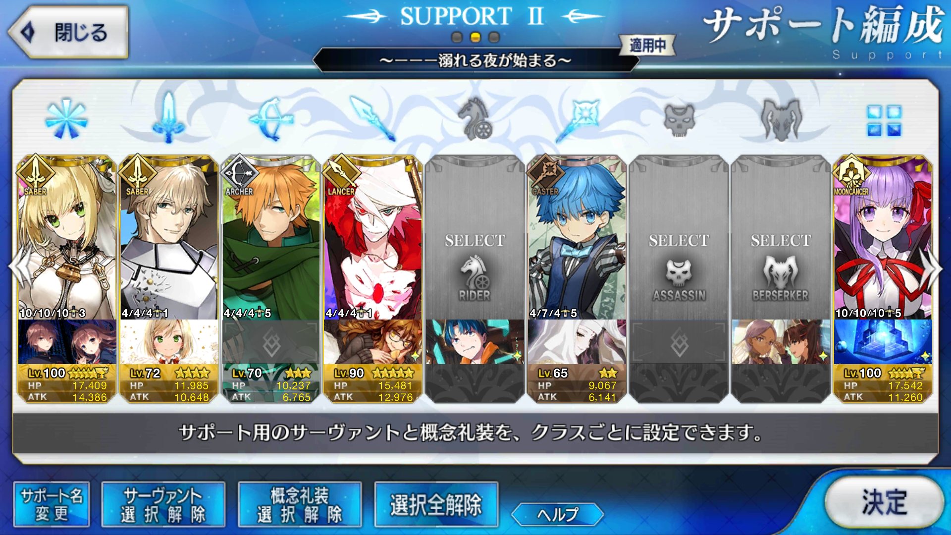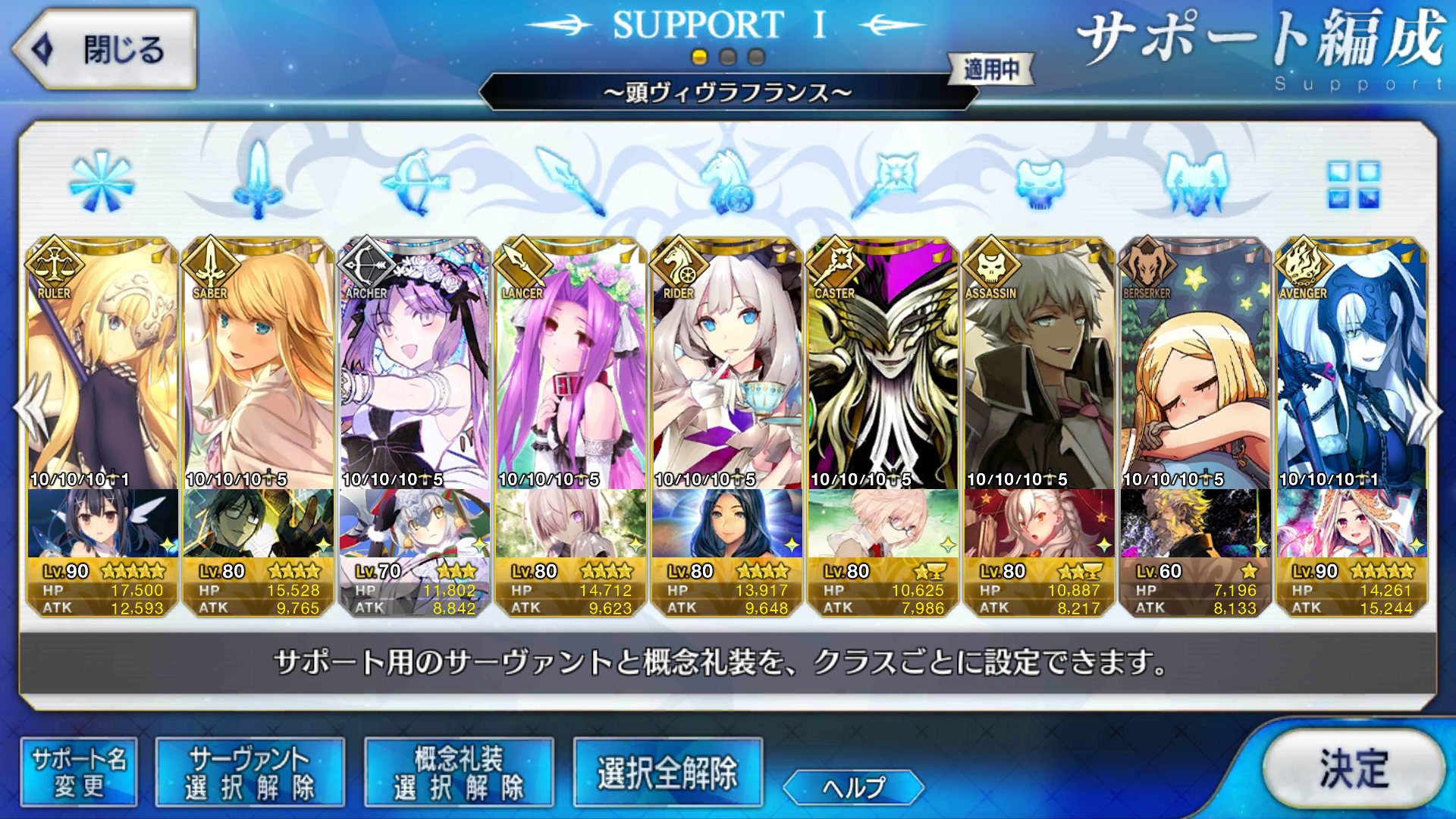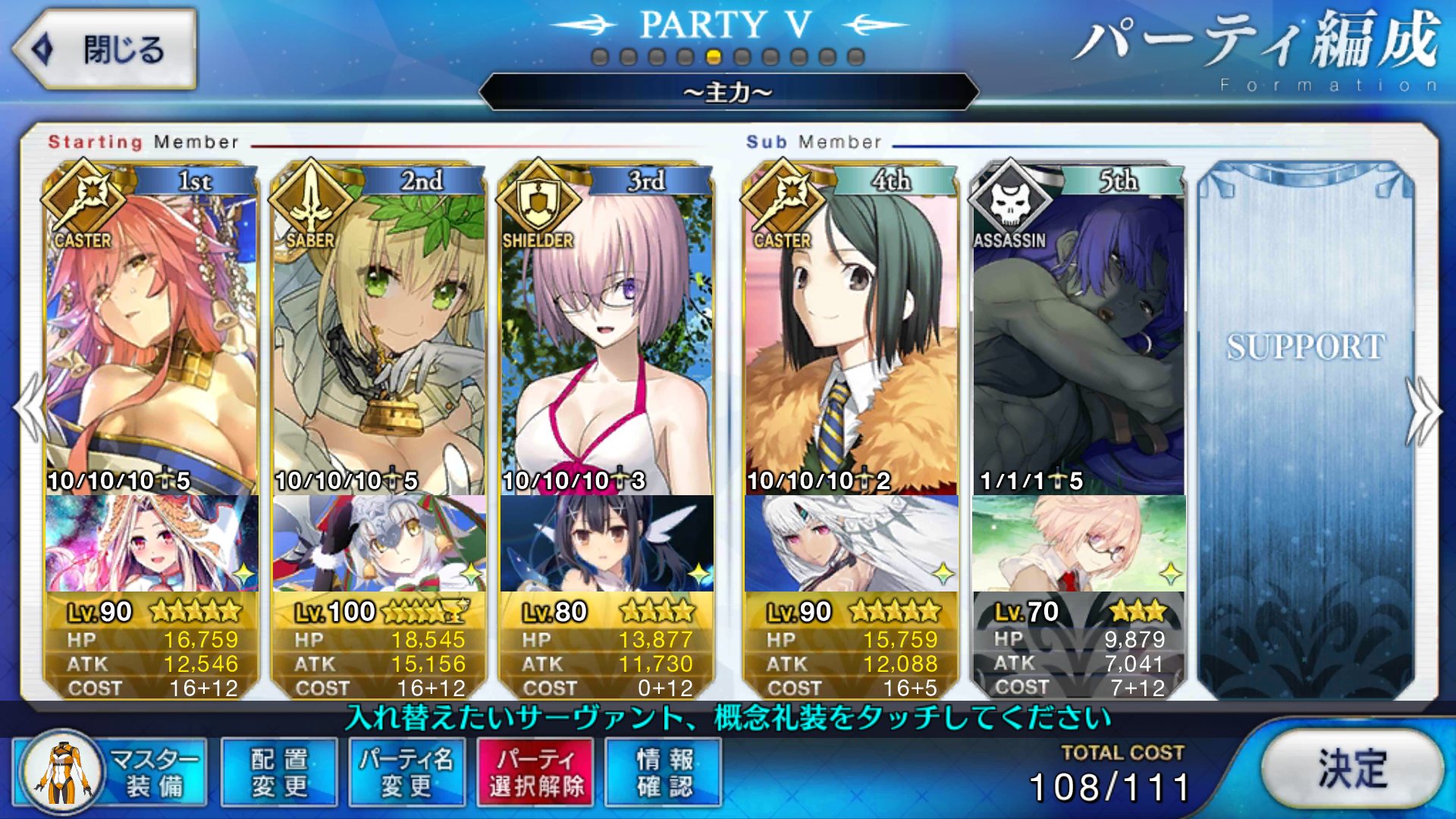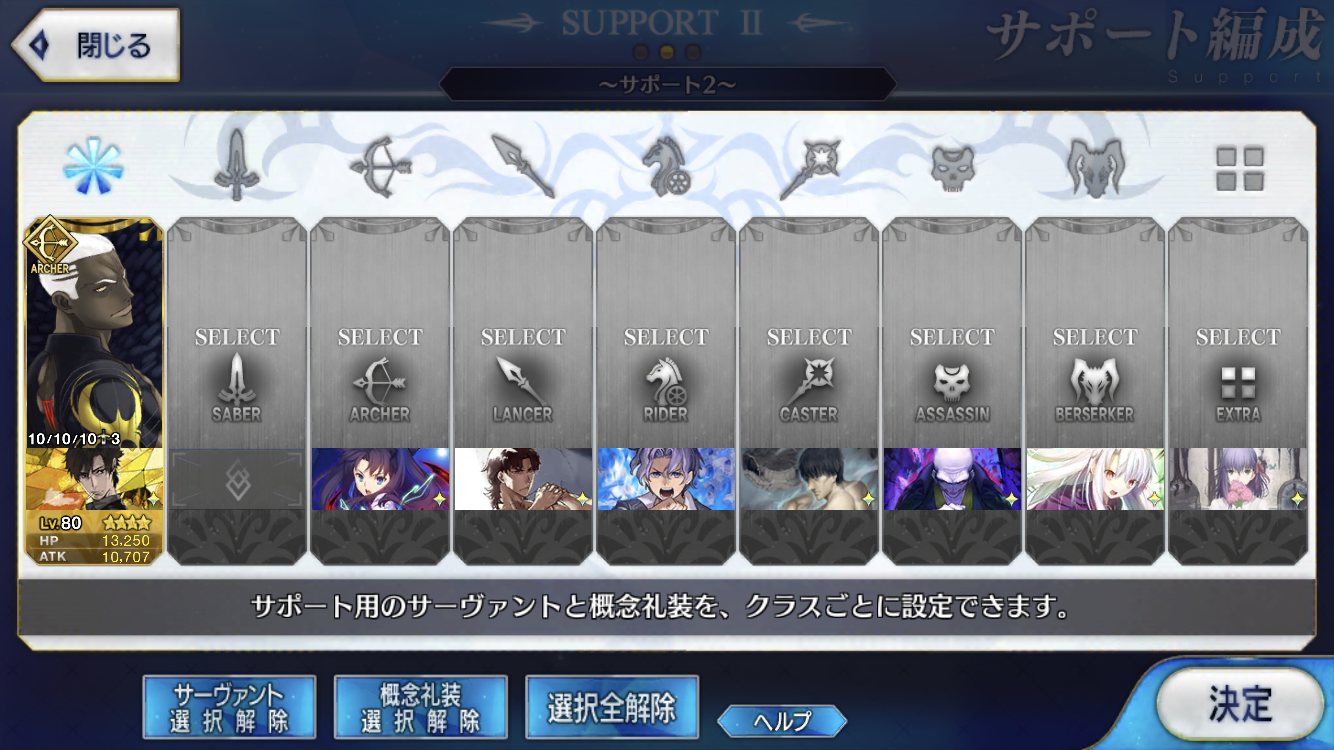 (ガウェイン好きすぎて6章1日でクリアし、ストモガチャから引き当ててその日のうちにスキマしたやつ)全サポ枠埋められるほど星5持ってないです(半ギレ)