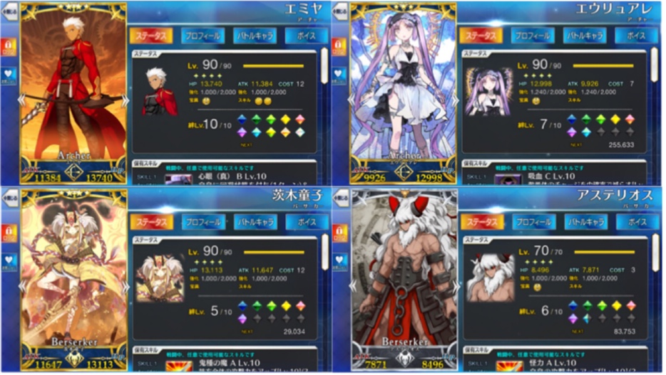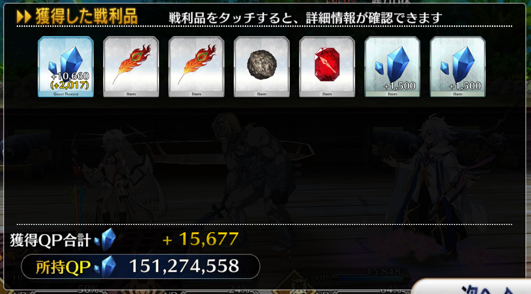けど素材が足りない。そして少しずつ確実に減っていくQPが恐ろしい。極論、廃課金と思しきフレンドが数人いれば、ストーリーも高難易度も事足りるからね