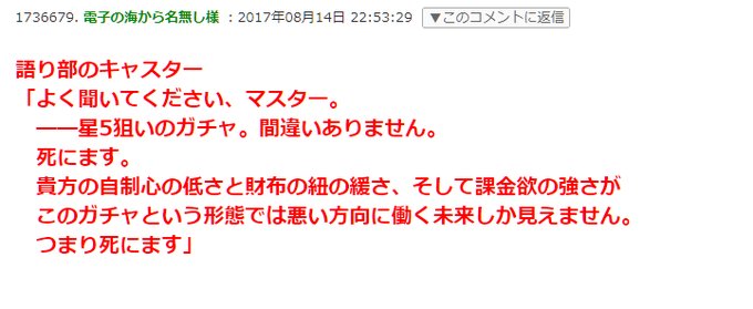 いうて最近だと水着イベの激遅延長告知の時に比べりゃ荒れ具合としては大人しい方だと思う>>951