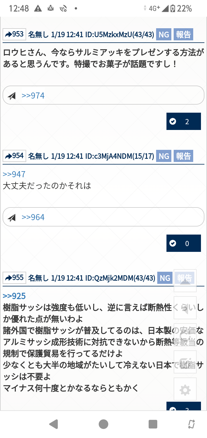 突然のパイセンは卑怯サルミアッキの話題が出た下にアルミサッシの話題が出たから何かの読み間違いかなと思ったら樹脂サッシとアルミサッシの比較みたいな話題だったのでサルミアッキとアルミサッシを勘違いした訳ではなかった。そもそもサルミアッキとアルミサッシは