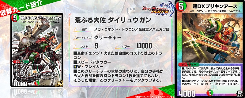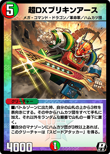 極論「マナゾーンにハムカツ団が三枚以上ある状態でブリキンアース召喚して、確認したデッキトップ三枚が全部大佐含めたハムカツ団且つ火と自然のドラゴンとして、ブリキンアースでスピードアタックして大佐に革命チェンジ」ってやったら実質大佐で四回攻撃か……ロマンあるなぁ>>799