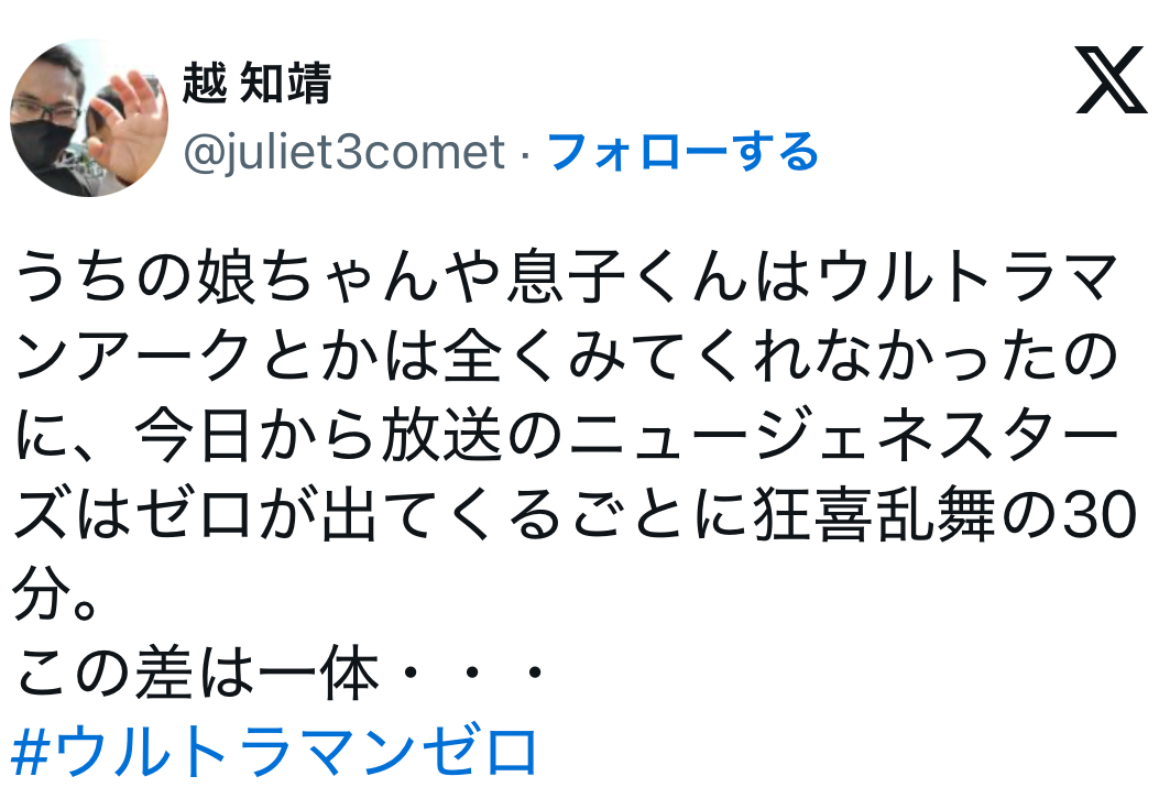 むしろ他の対戦したりする競技性のある男子向け玩具をほぼほぼ駆逐していったバケモノ。ゼットがマントを纏うだけで、笑いと成長したなと言う謎の親心のような安心感が湧く