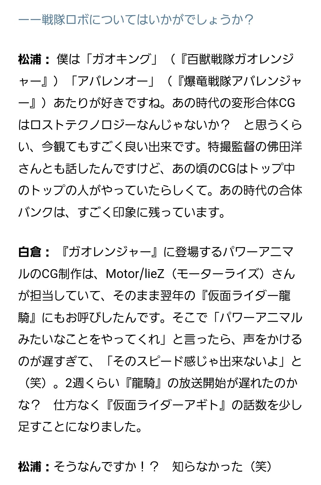 仮面ライダーアギト、最初の予定より話数少し伸びたのか龍騎のCGのために(というか依頼するのがあのクオリティーにするには遅かったからか)。アギトのあの神様殴った後の最終章的な話は必要だし好きだけどあの辺り前後のちょっと間延びした感じはやっぱ話数付け足したから来てるのか。>>960