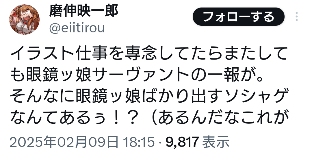 それともひむてん完結記念なの???今年の新規実装鯖75%が眼鏡女子で草