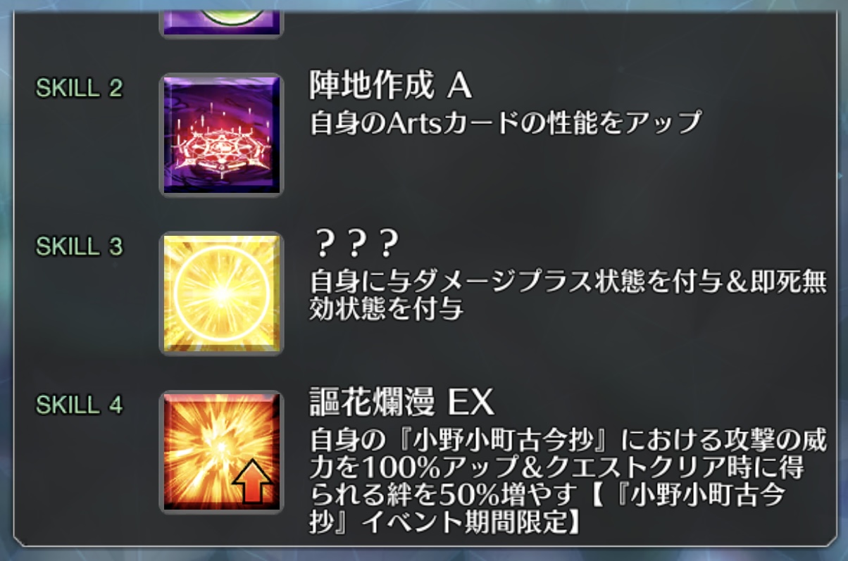 ・上句が読み上げられたターンで連なる下句のサーヴァントを倒せると、強化効果を得られる。
