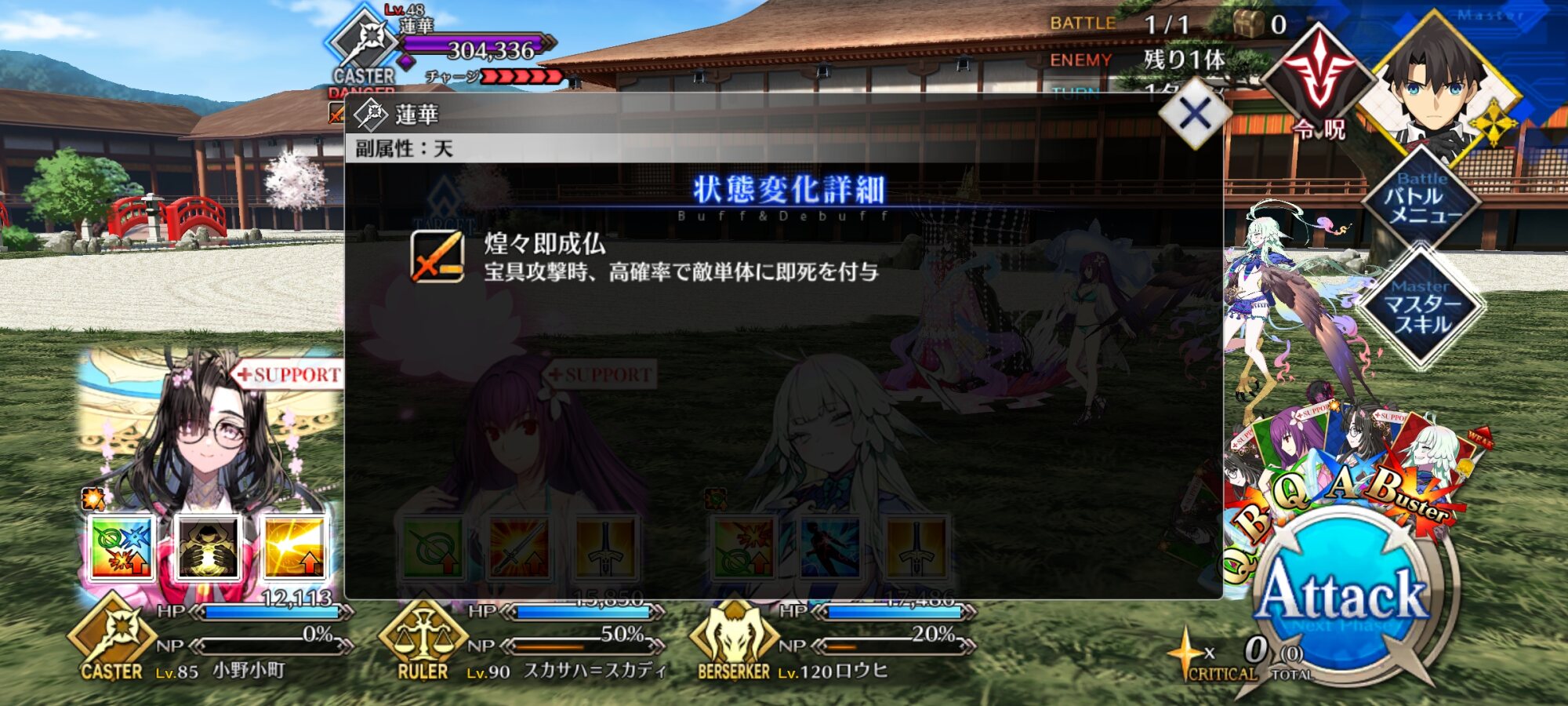即死2回引いたわ・・勝てたけど単体宝具で一人一人倒す