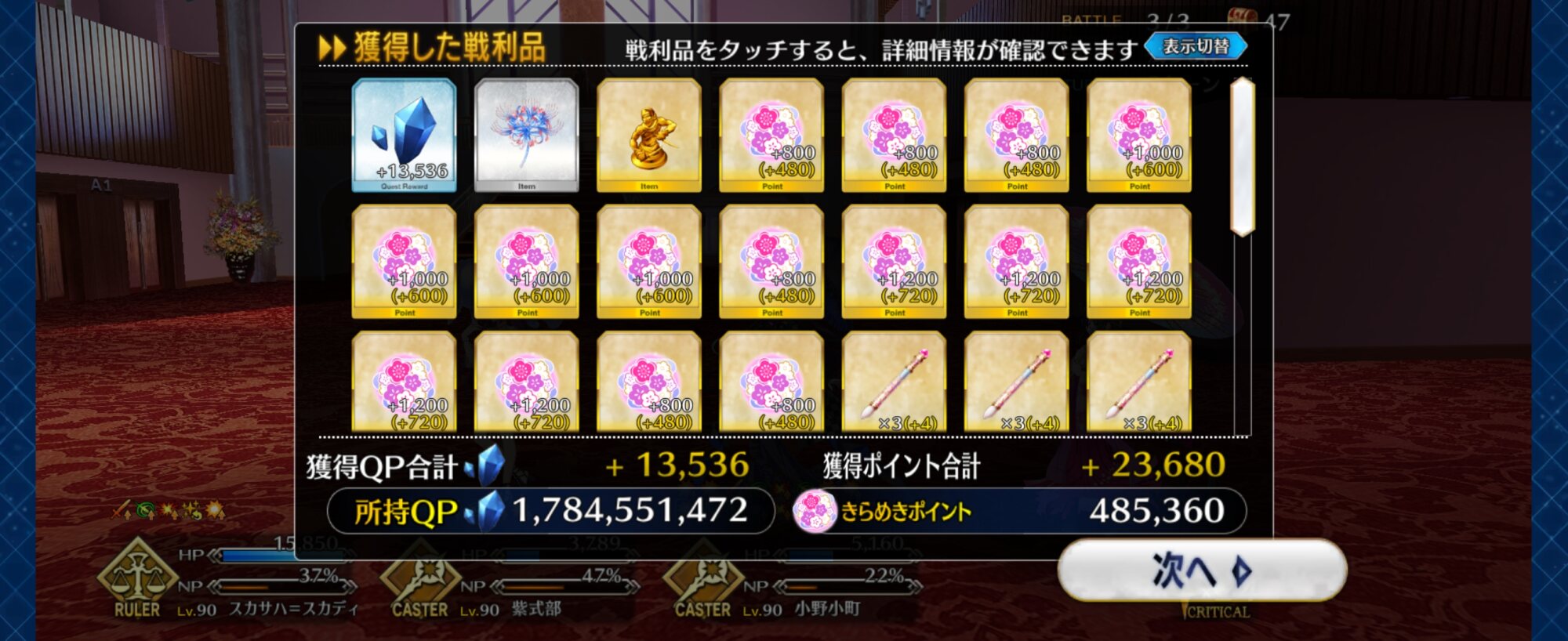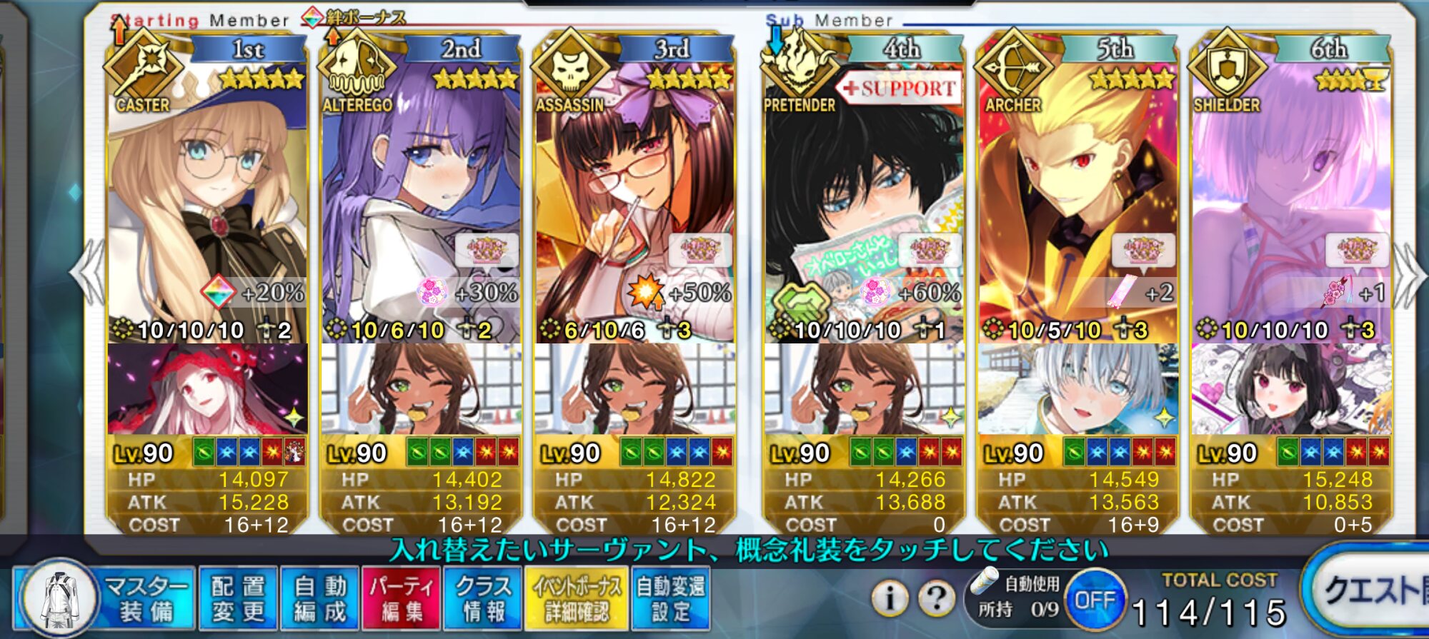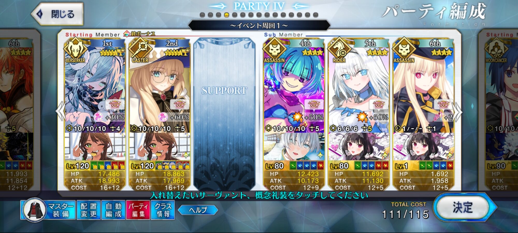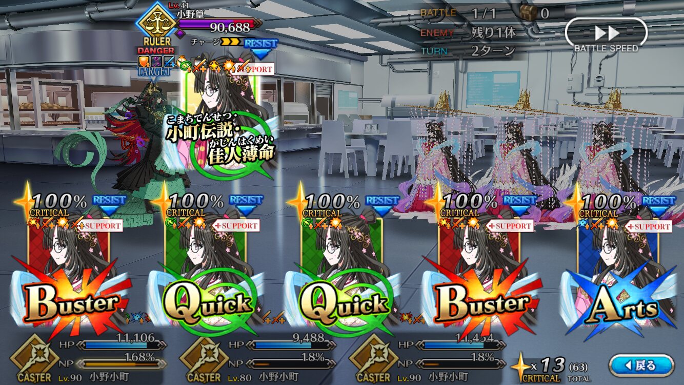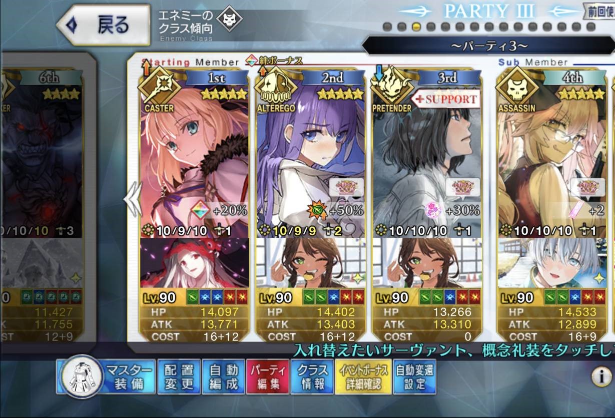 90++3ターン6積みは何しても無理っぽいからそのキャスター勢にちまちま殴り周回でご活躍していただいてる